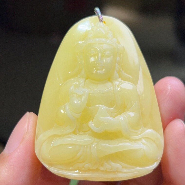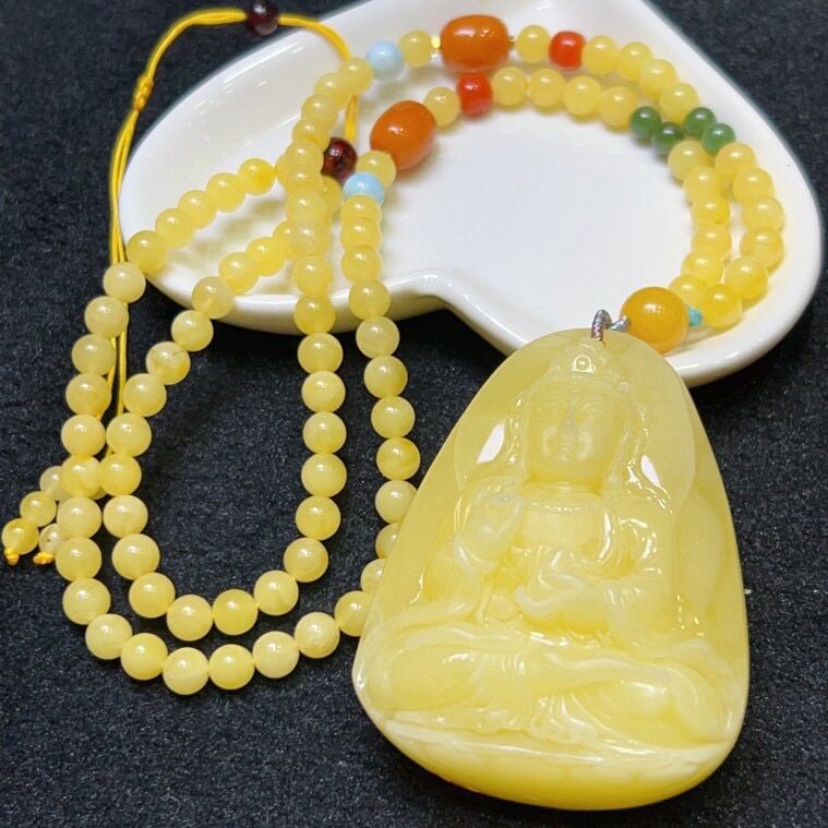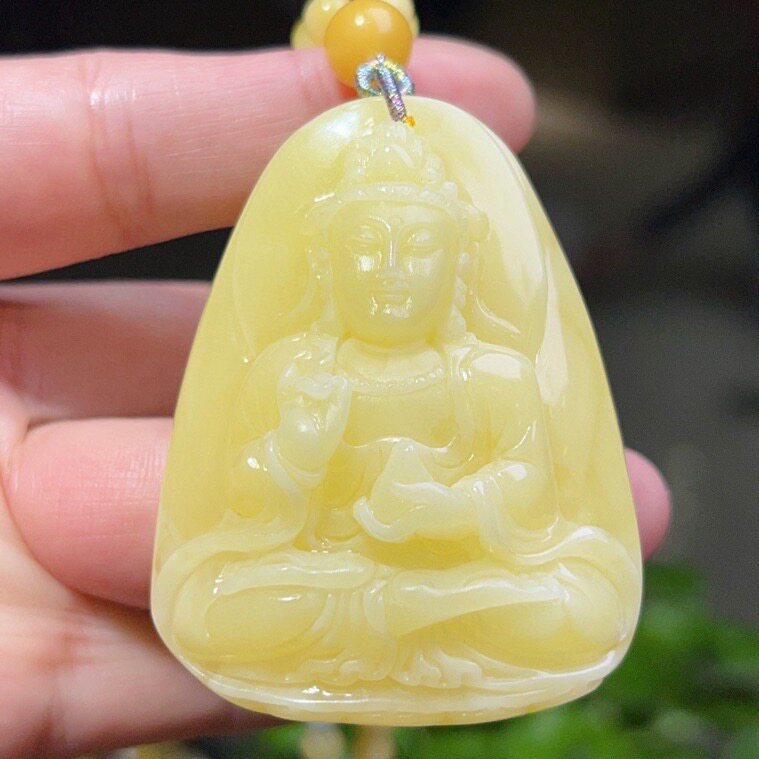📚 天然原矿蜜蜡雕刻观音菩萨吊坠项链挂件