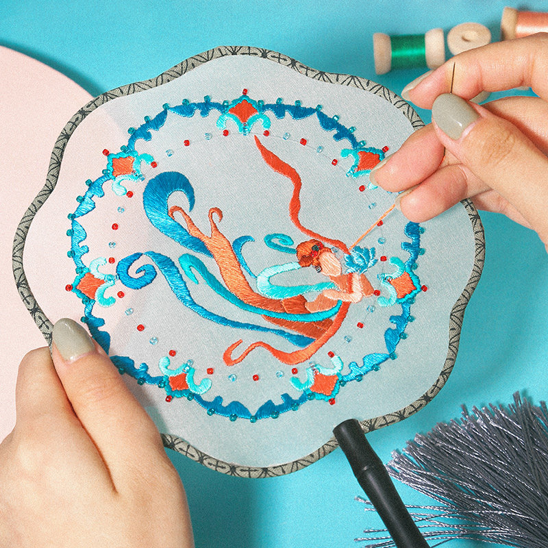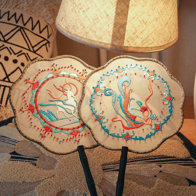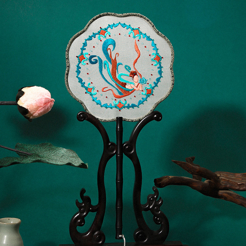 📚 阿卡手工苏绣自绣敦煌团扇刺绣diy材料包绣品手工绣古风绣花制作