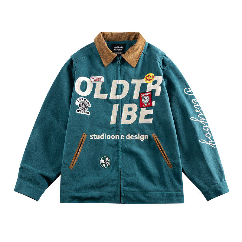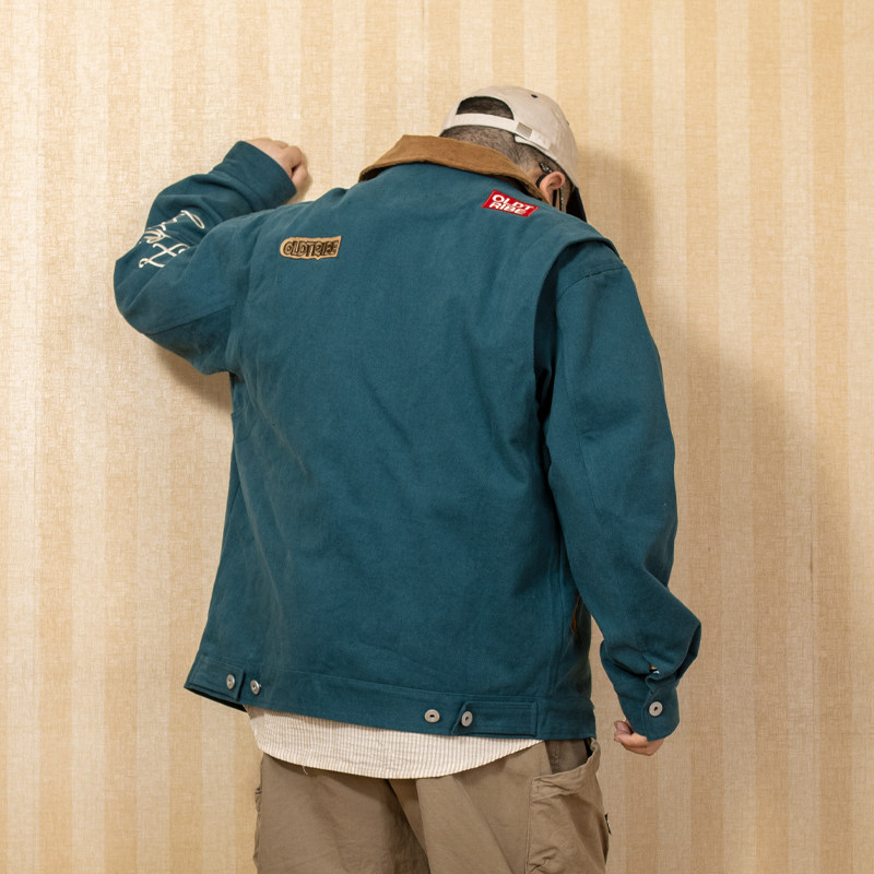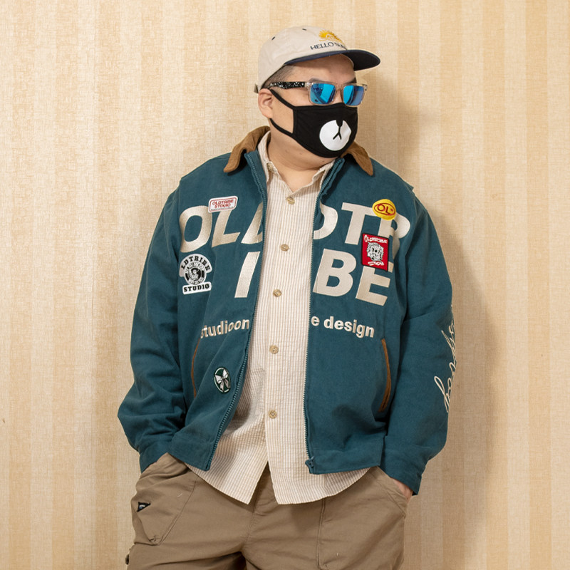 📚 K叔春季日系复古夹克刺绣宽松撞色oldschool潮个性时尚上衣外套