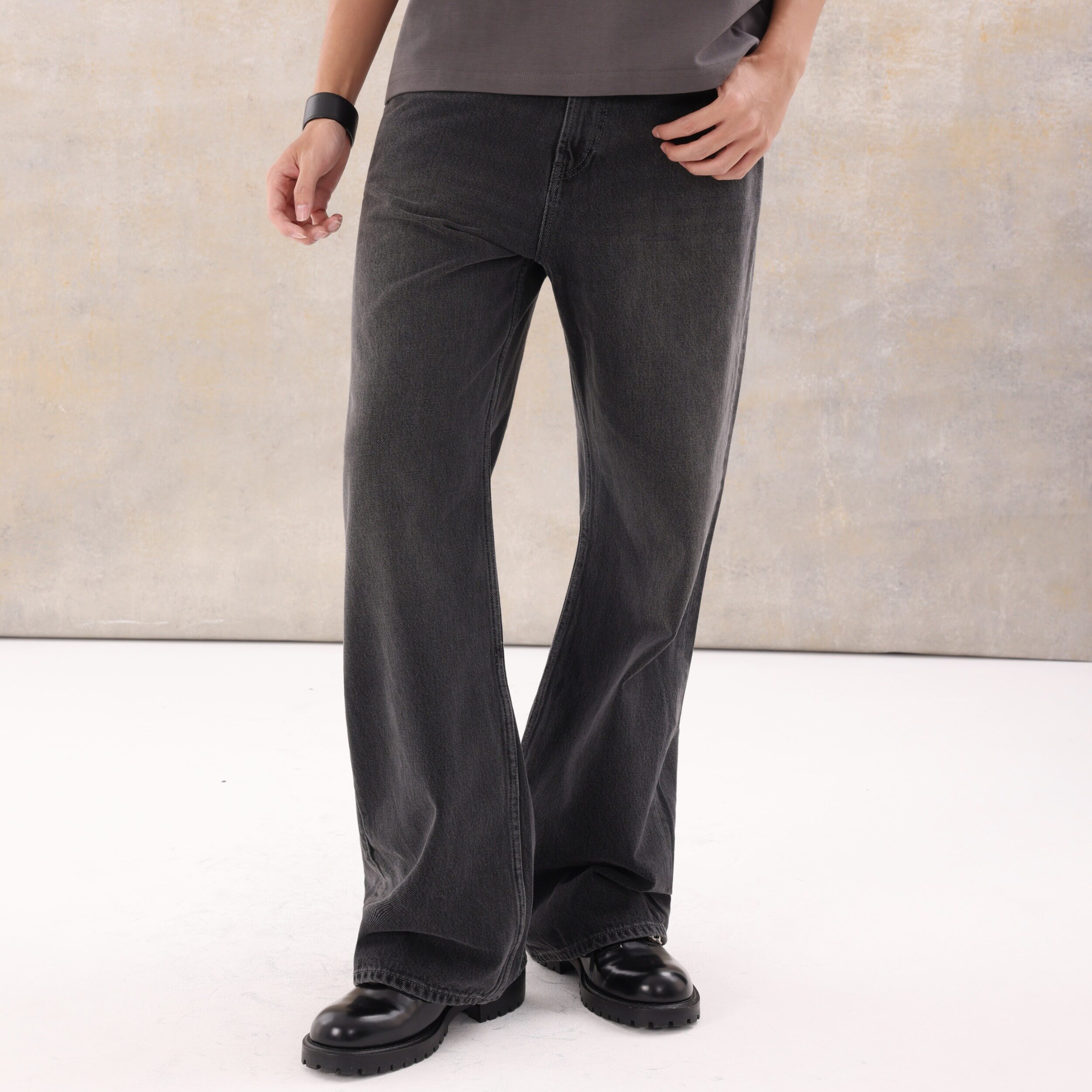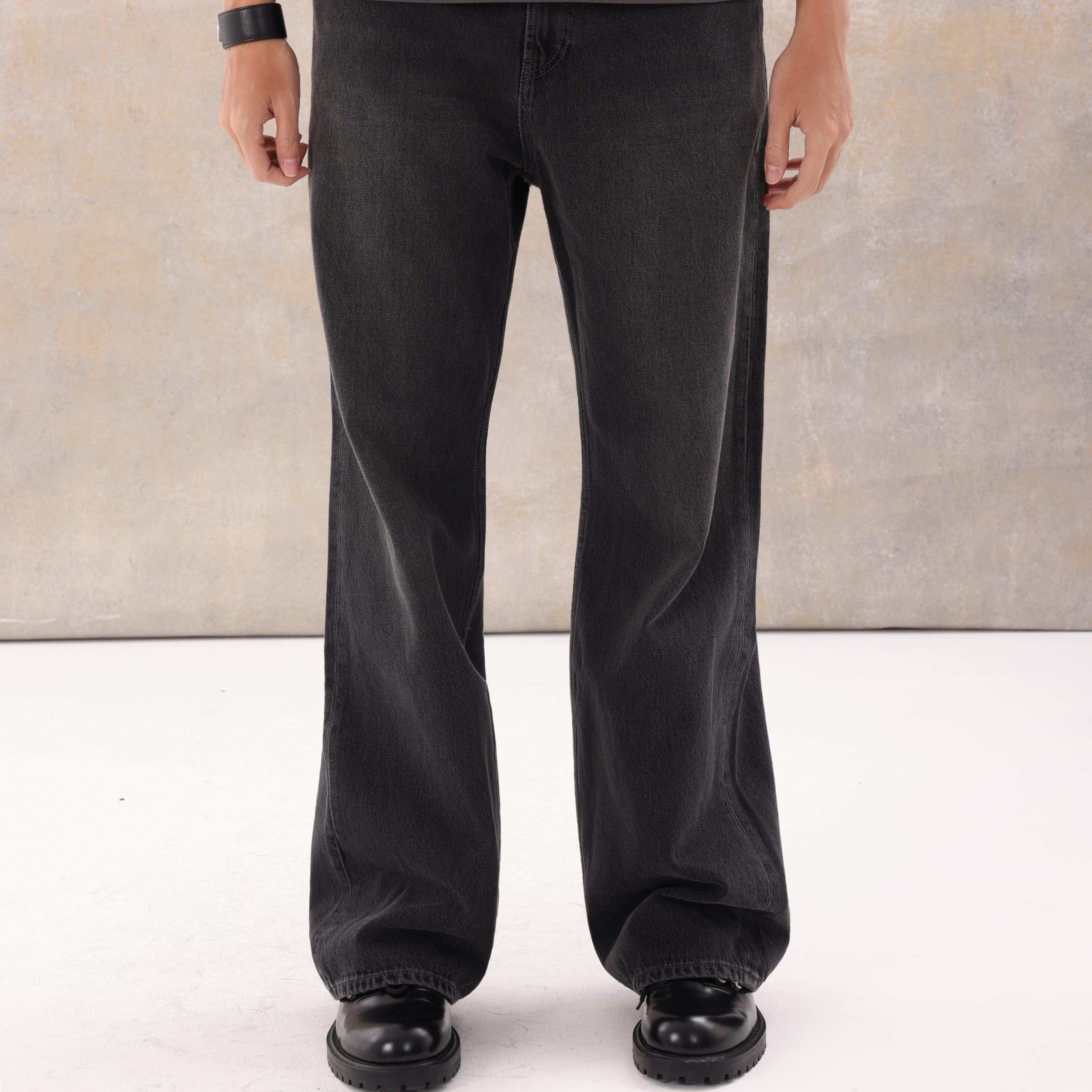 📚 Selfness Vintage 2021M版型水洗黑宽松直筒阔腿微喇做旧男牛仔裤