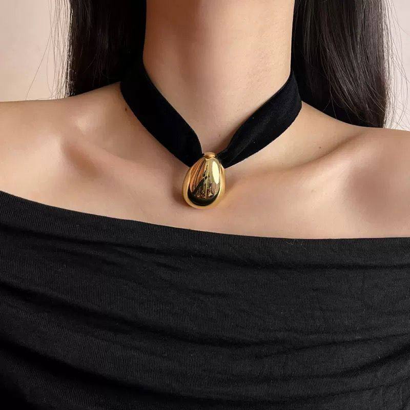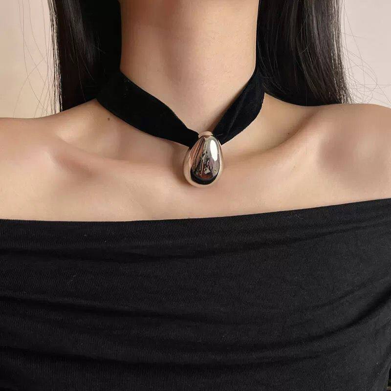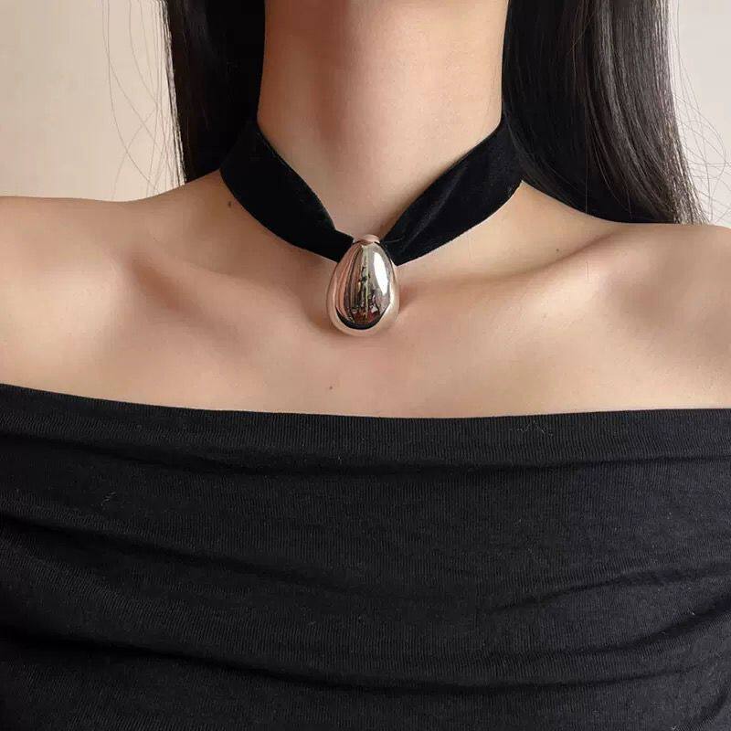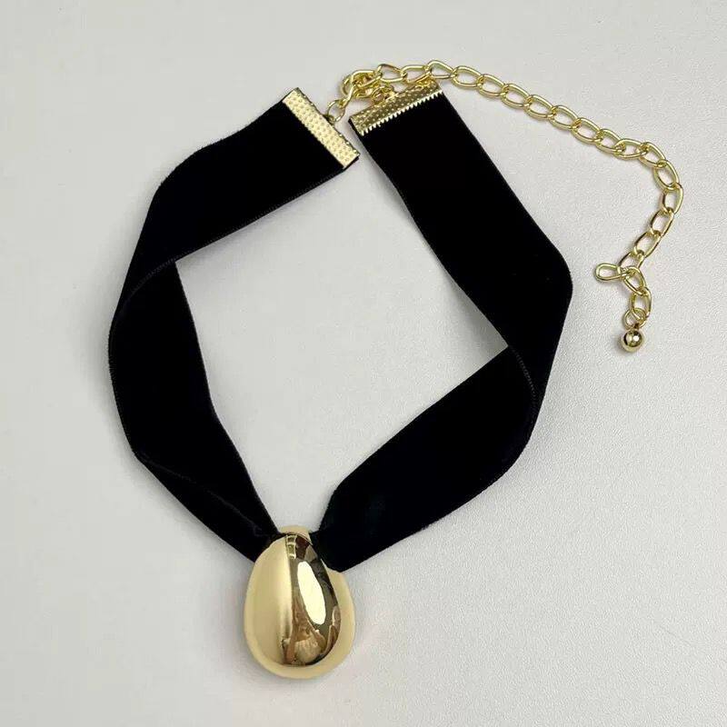 📚 法式复古黑色宽丝绒choker项圈蛋型水滴吊坠项链轻奢高级感颈链女