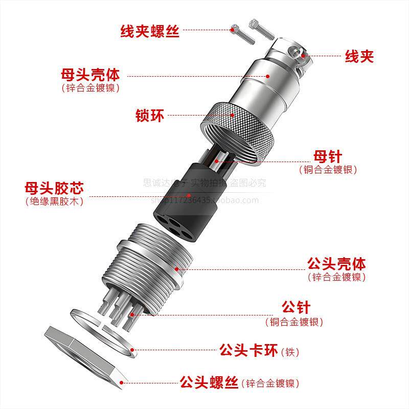 📚 航空插头GX12-GX16-GX20-2/3/4/5/6/7/8芯公头母座对接电缆连接器