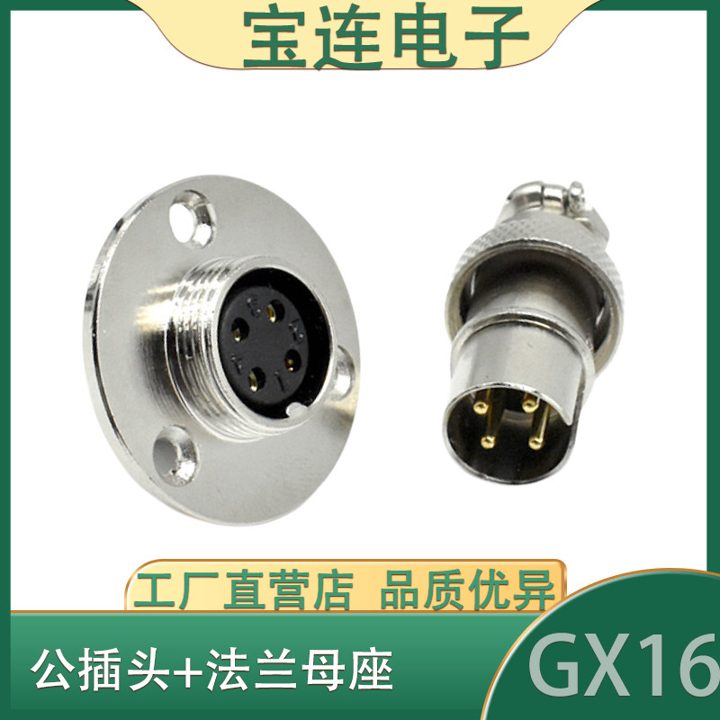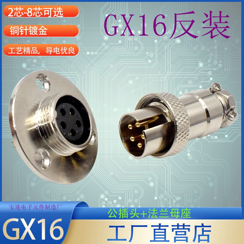 📚 航空插头GX16-2芯3/4/5/6/7/8芯连接器公插头固定法兰母座M16反装
