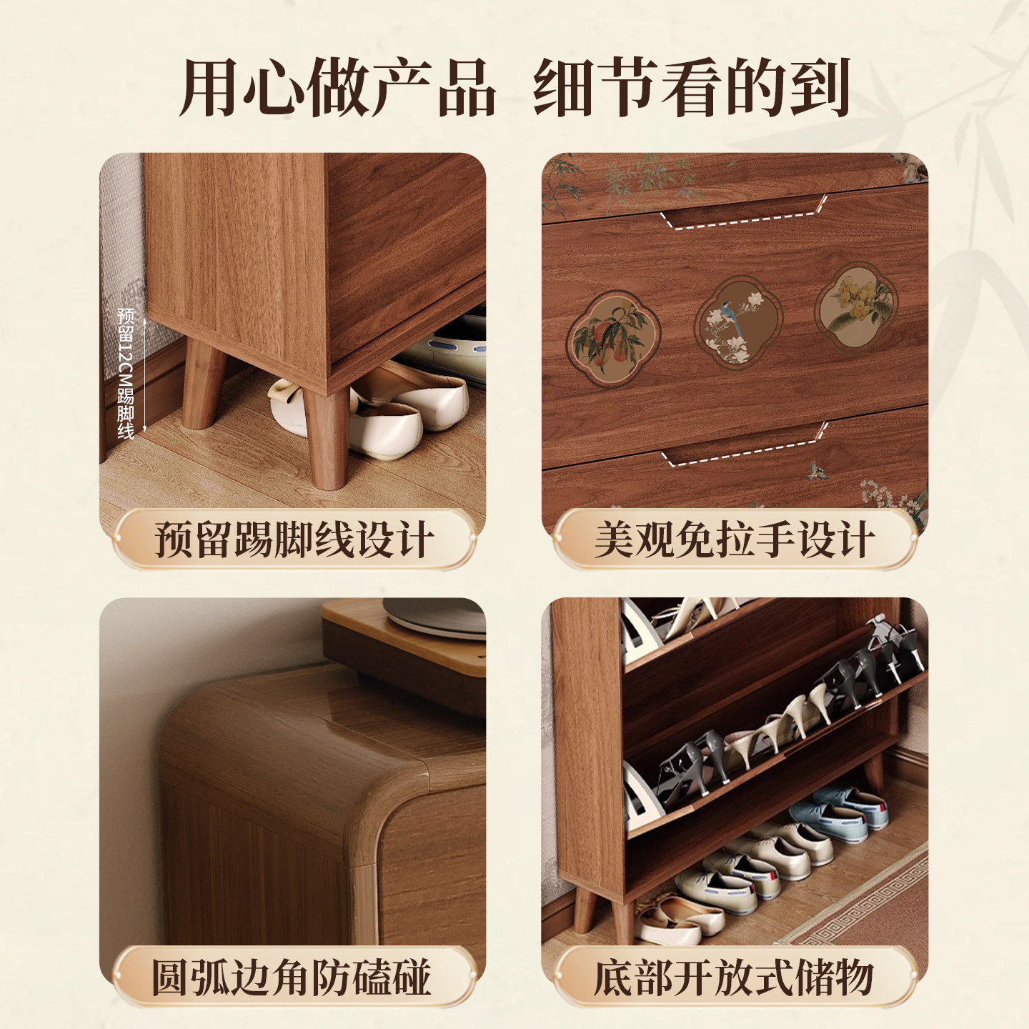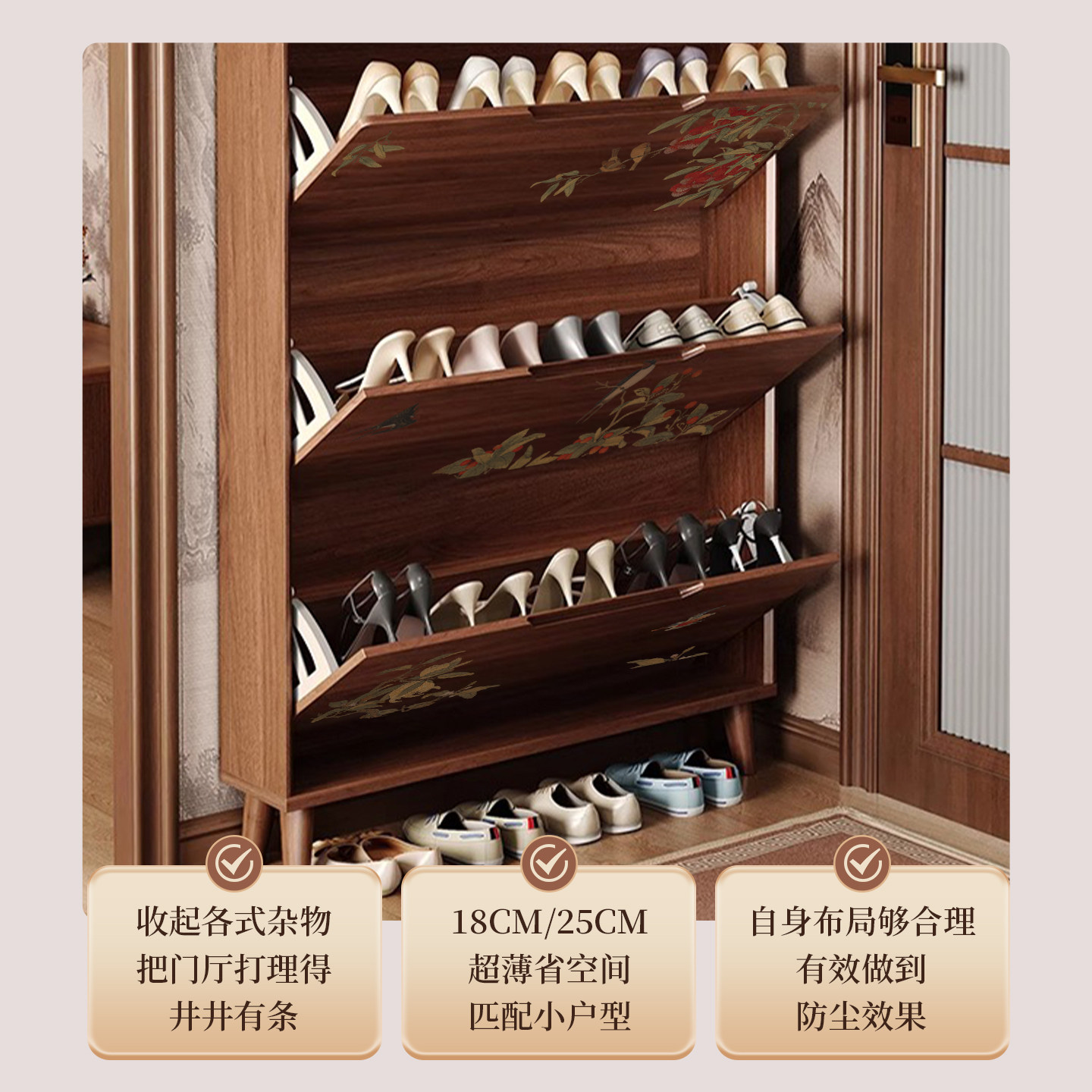 📚 新中式花鸟实木鞋柜2026新款爆款高档入户门口翻斗收纳超薄款柜子