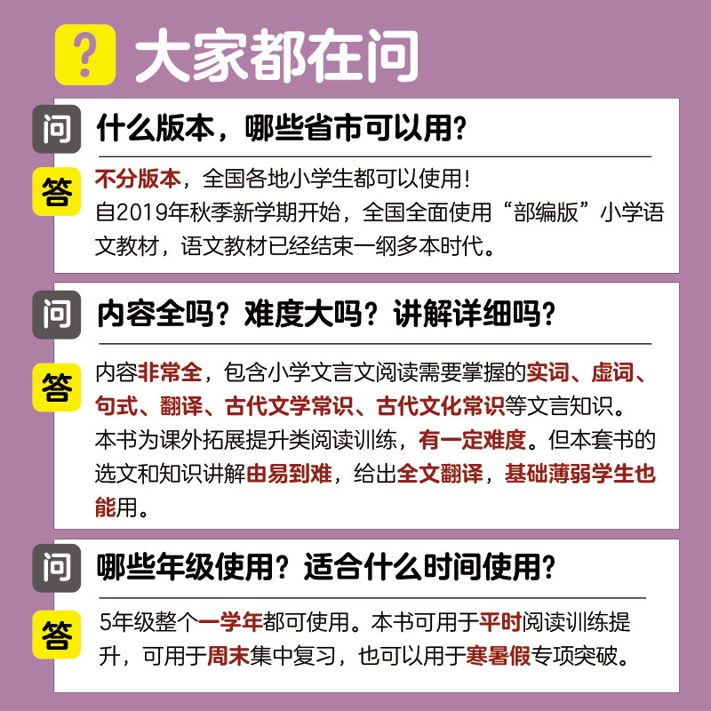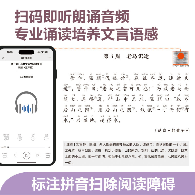 📚 小学文言文阅读强化训练五年级 赠朗诵音频 周计划