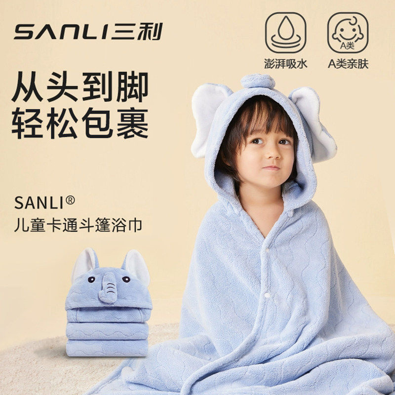 📚 三利儿童浴巾斗篷连帽新生婴儿可穿式浴袍男女童宝宝婴儿加大裹巾