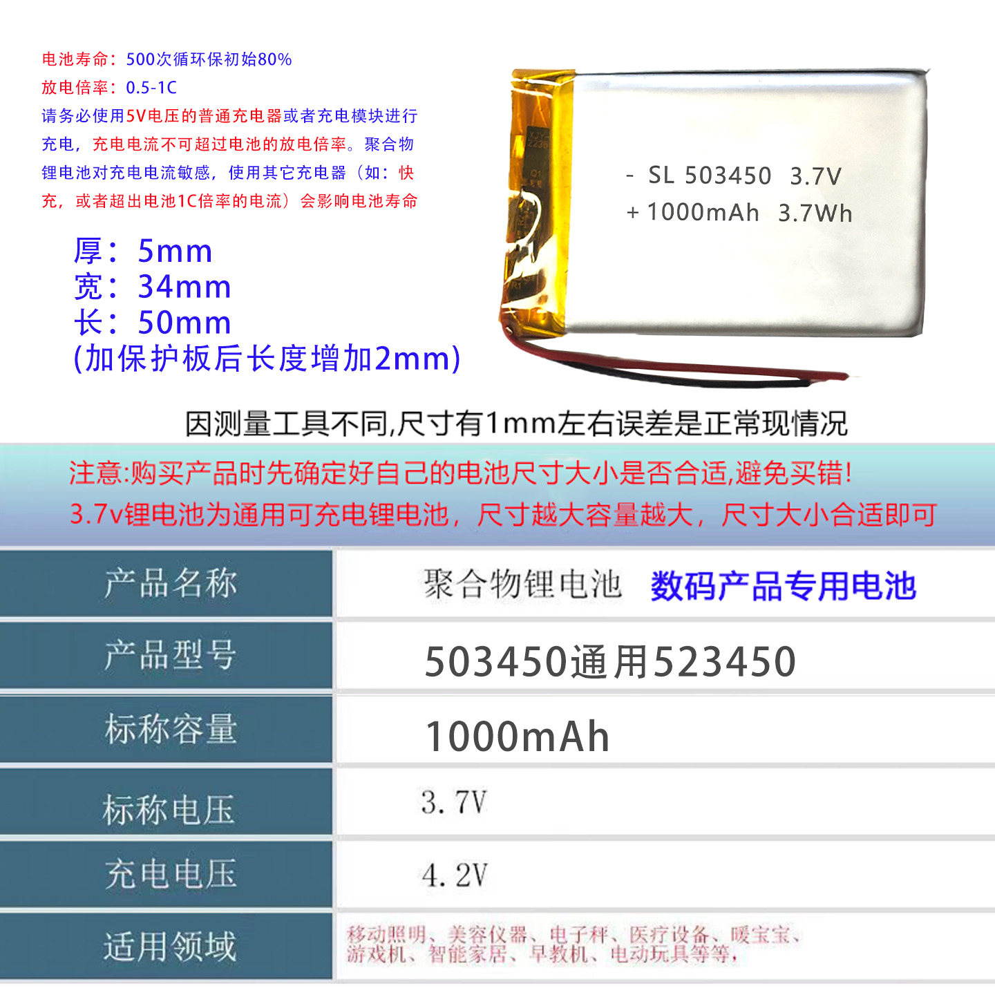 📚 503450通用523450小谷机器人智能垃圾桶3.7V聚合物电池软包锂电池
