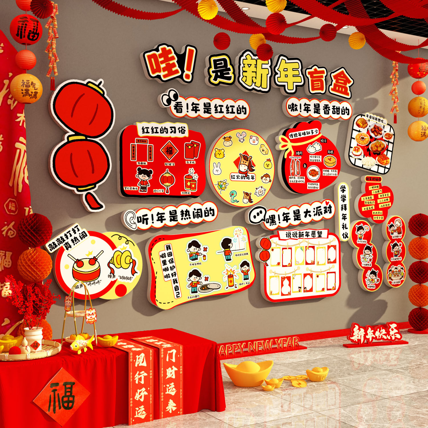 📚 2026过新年习俗中国传统节日墙春节布置幼儿园环创装饰贴纸马场景