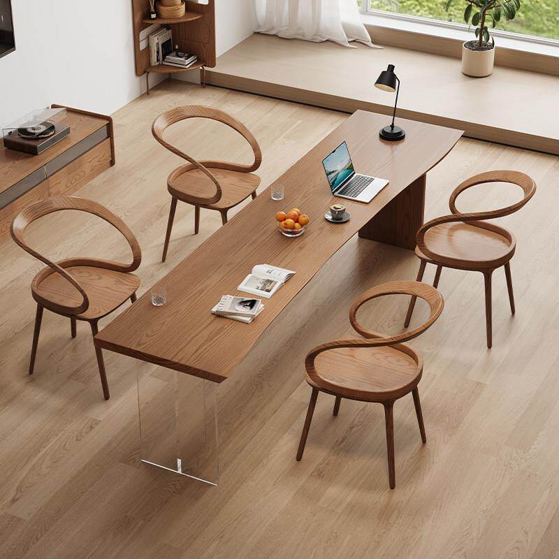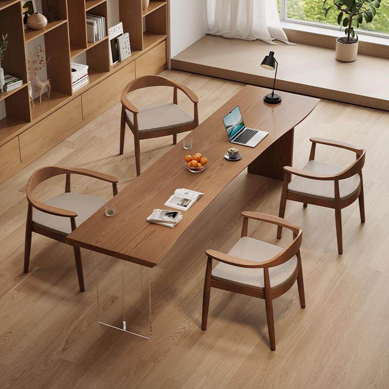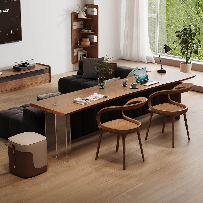 📚 轻奢现代高级感实木阅读学习桌去客厅化大长书桌茶桌一体两用简约