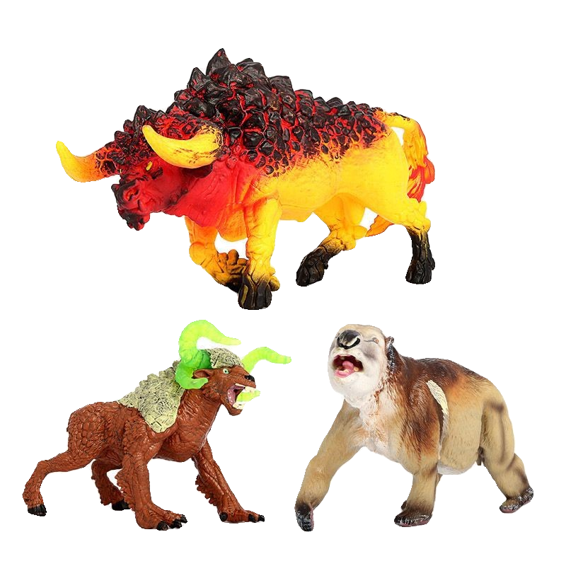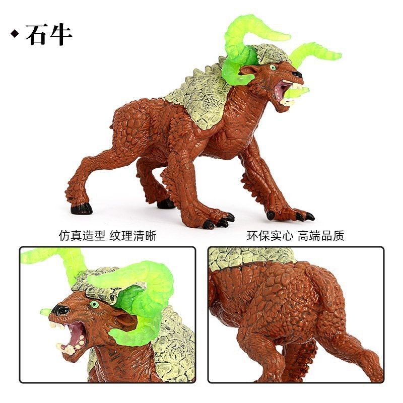📚 仿真动物神话怪兽熔岩浆火斗牛石牛双门齿兽魔幻魔兽儿童玩具模型