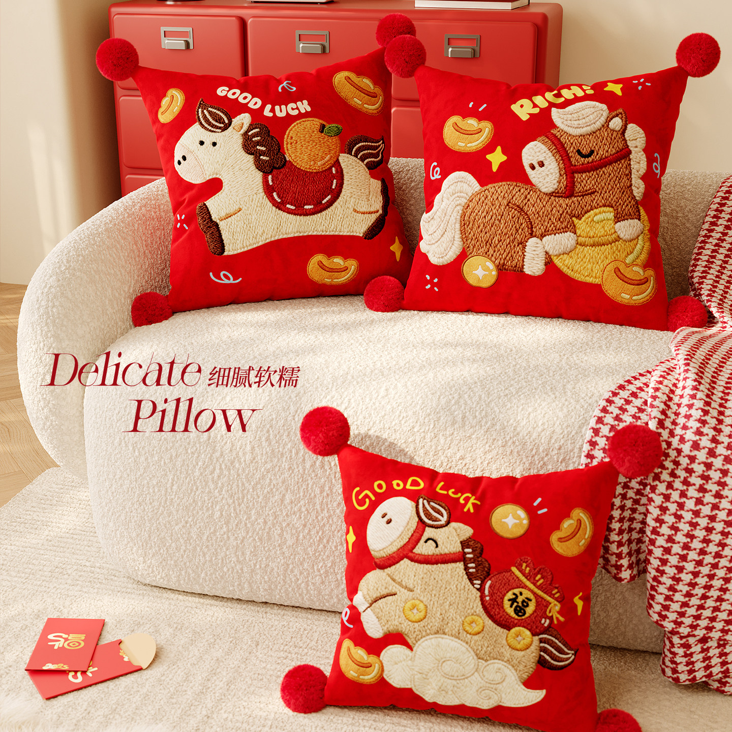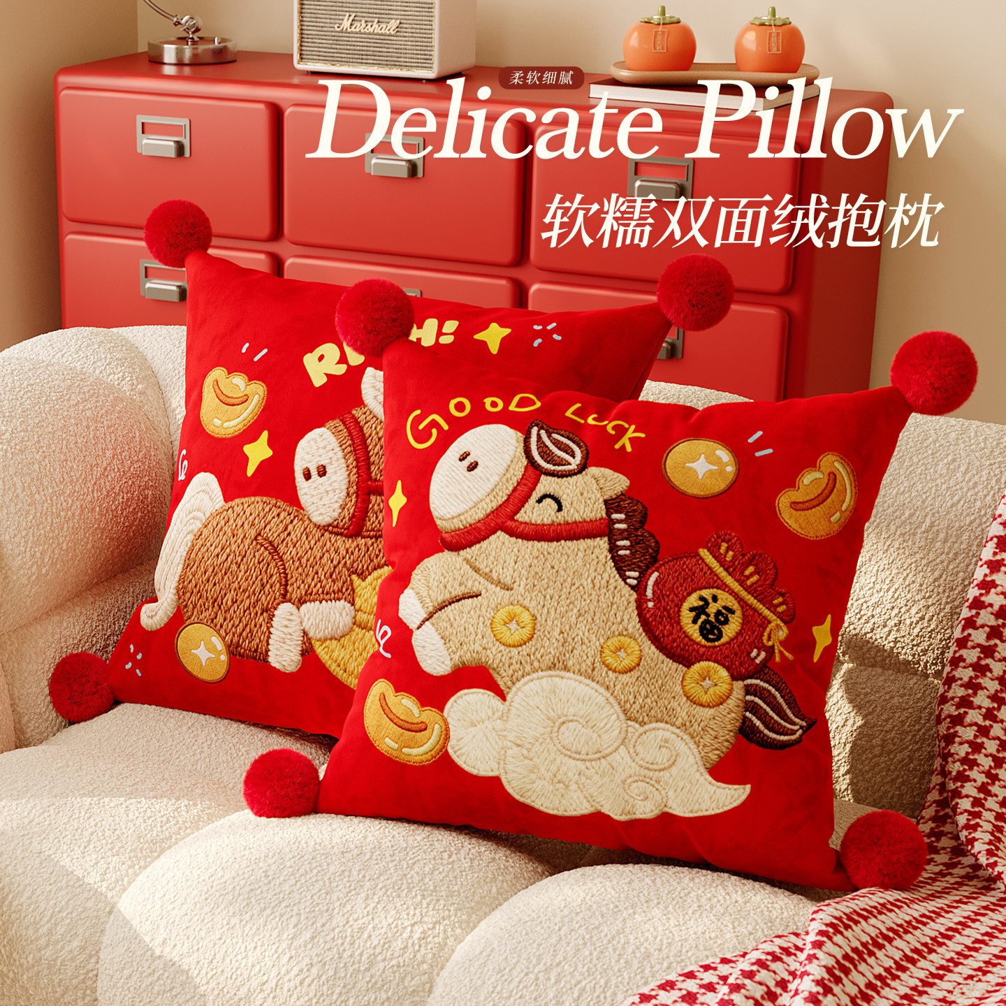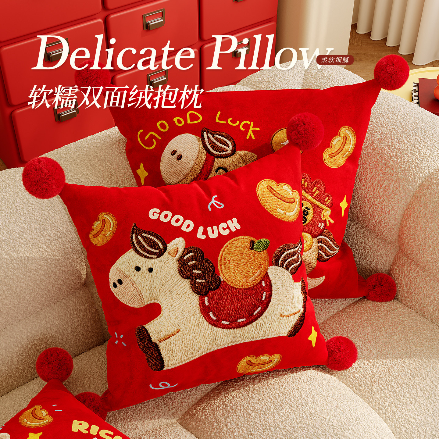 📚 马年红色喜庆卡通抱枕新年抱枕卧室客厅沙发靠垫坐垫春节装饰氛围
