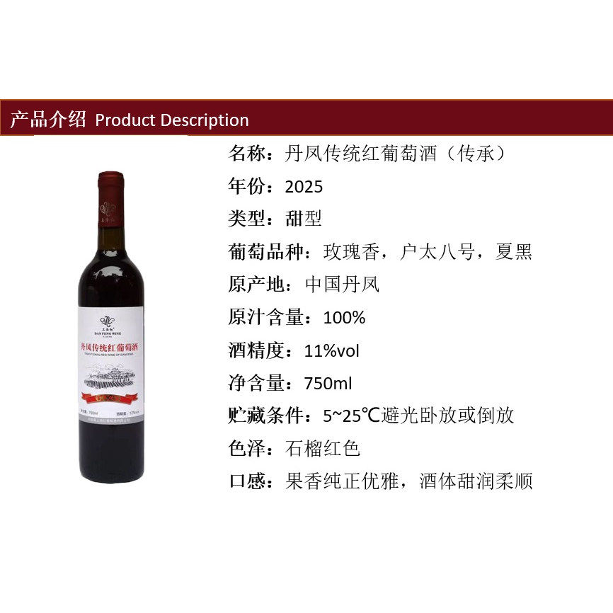 📚 丹凤传统红葡萄酒经典传承上洛红瓶装100%原汁甜型纯甜口感安森曼