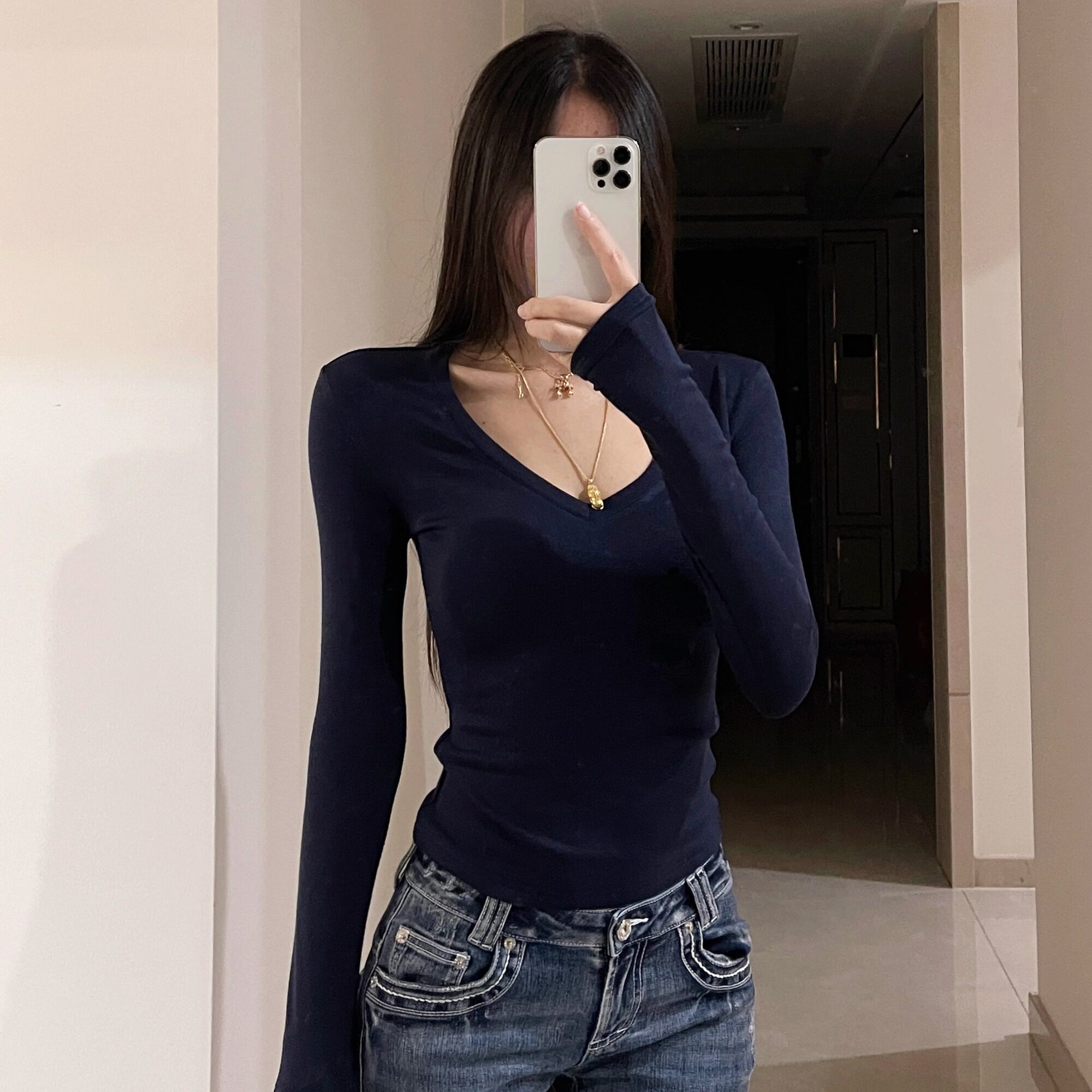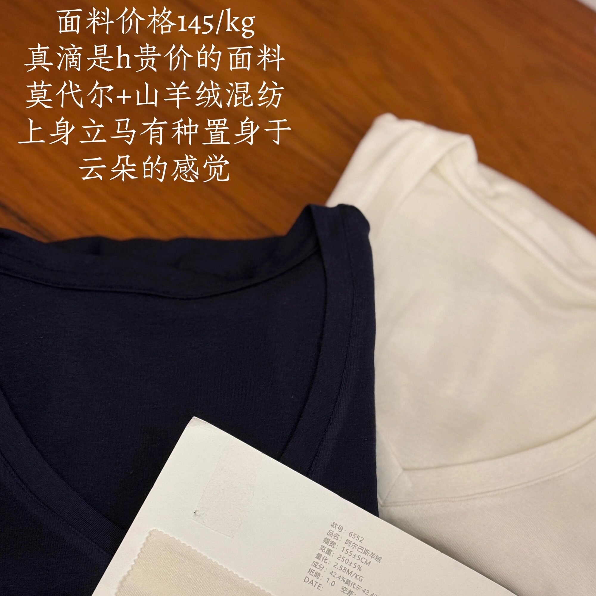 📚 【现货即发】阿尔巴斯山羊绒·软糯亲肤v领打底长袖T恤女修身上衣
