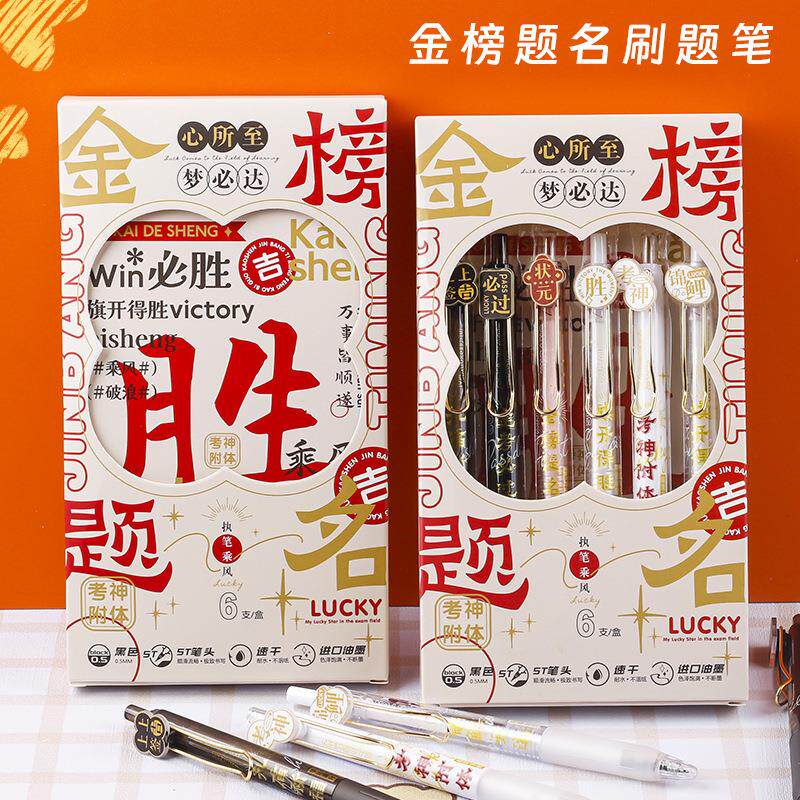 📚 金榜题名中性笔励志文字考神附体速干高颜值ins学生刷题按动笔盒定制