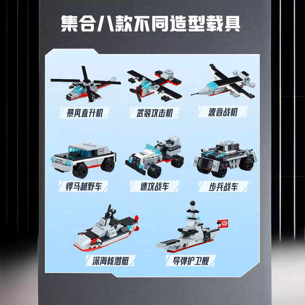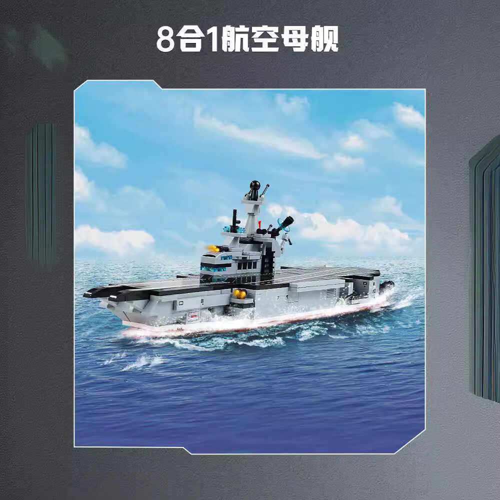 📚 启蒙核动力42205航空母舰军事潜艇飞机护卫舰战车8合1小颗粒积木