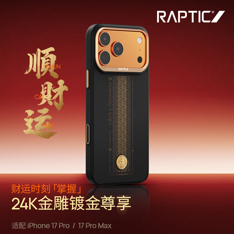 📚 「顺财运全包护行」Raptic适用苹果17Promax凯夫拉手机壳新款iphone17pro磁吸防摔芳纶纤维保护壳高级商务男