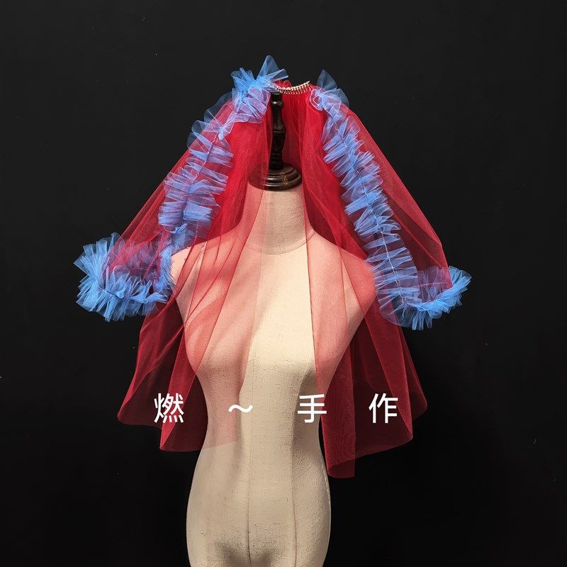 📚 新娘饰品 红色蓝色边头纱 领证头纱 旅拍头纱 影楼拍照红色头纱
