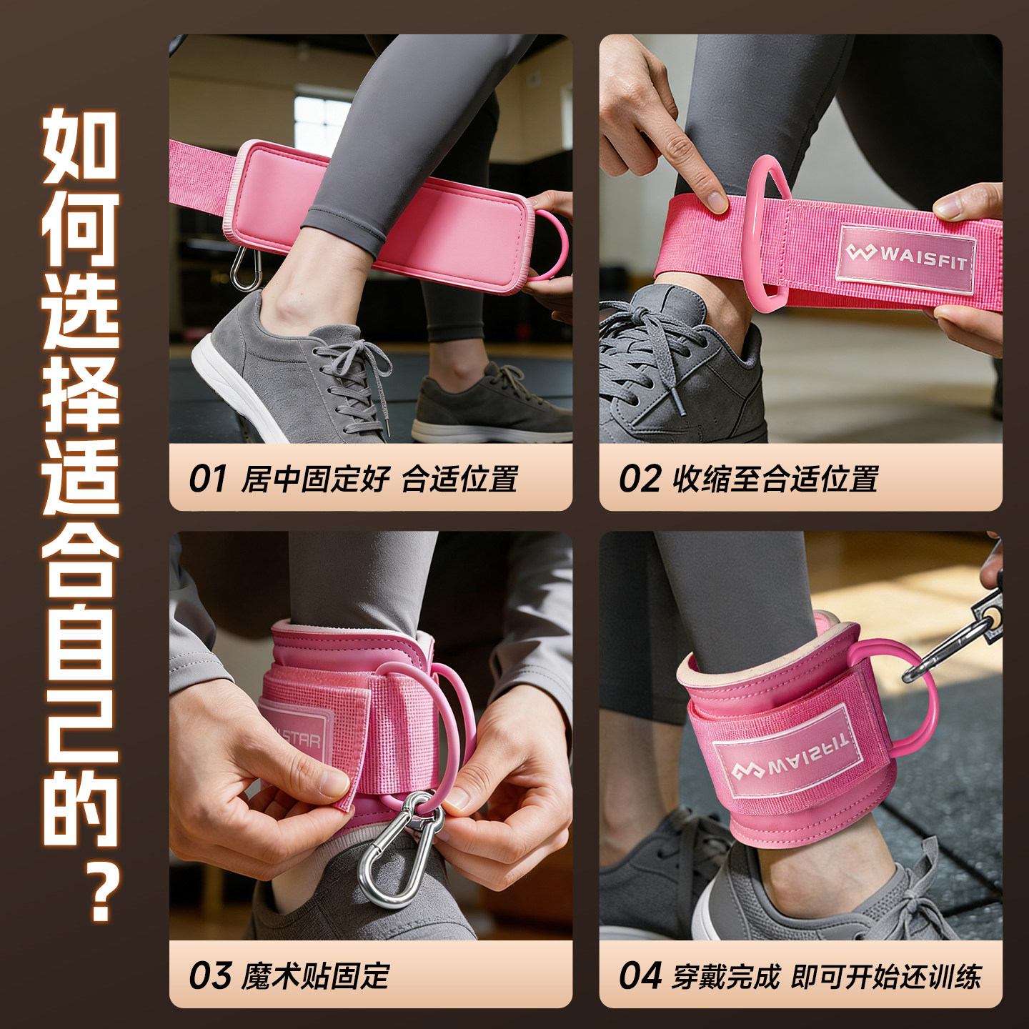 📚 龙门架脚踝扣手腕扣绳索后踢绑带健身脚踝扣练臀脚环力量训练器