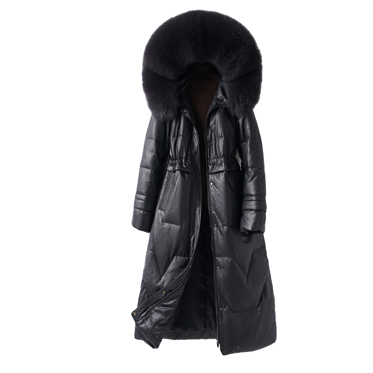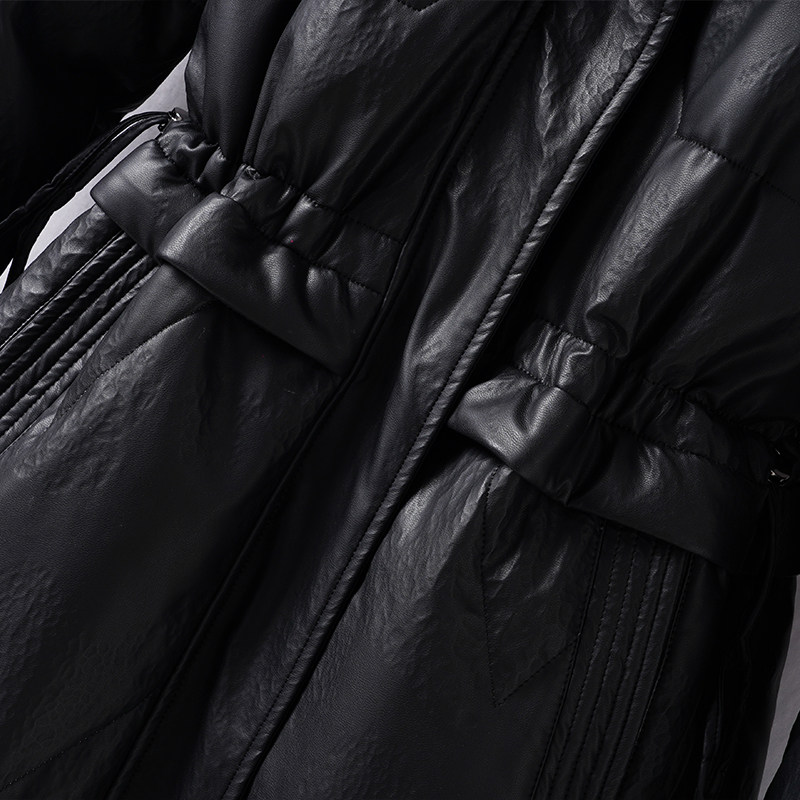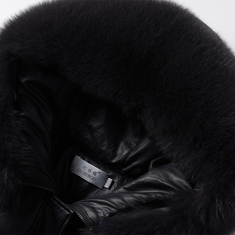 📚 真皮衣羽绒服女中长款黑色收腰狐狸毛领90白鸭绒海宁绵羊皮外套