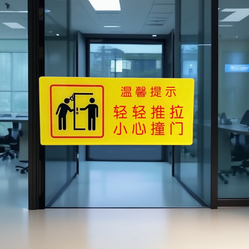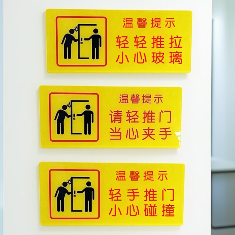 📚 亚克力小心碰撞玻璃门请轻轻推拉温馨提示牌当心夹手办公防火门贴