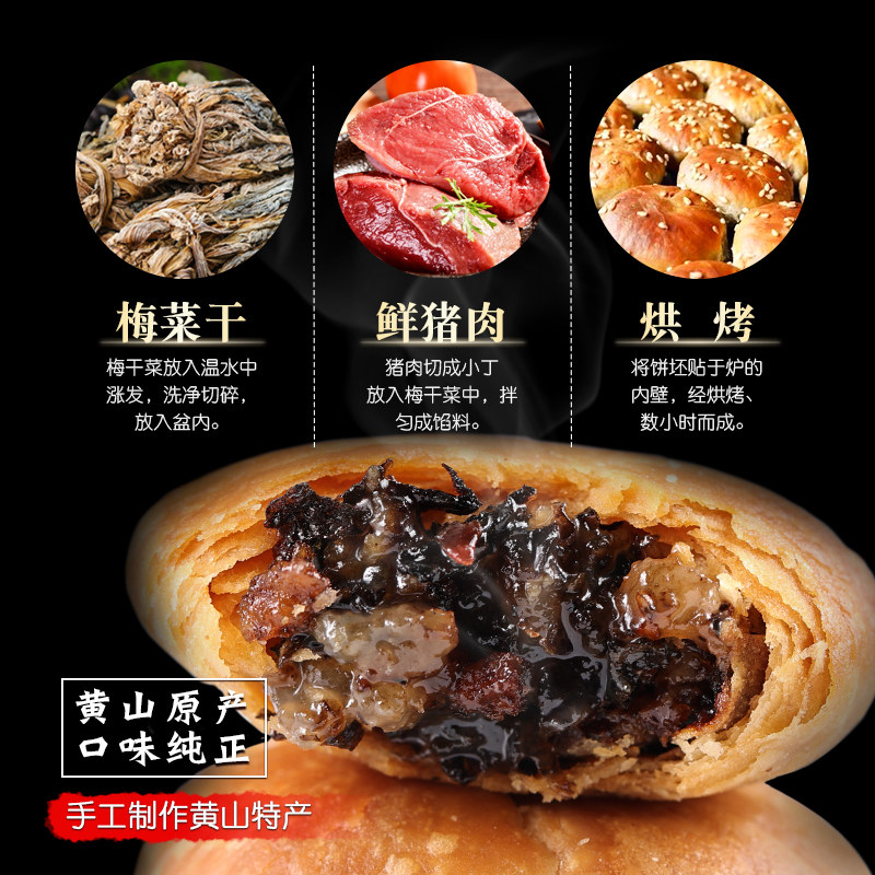 📚 黄山烧饼梅干菜扣肉蟹壳老式小烧饼香酥脆即食零食安徽特产即食
