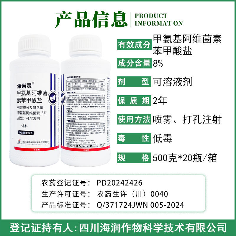 📚 海润海诺灵8%甲氨基阿维菌素苯甲酸盐蓟马美国白蛾松材线虫杀虫剂