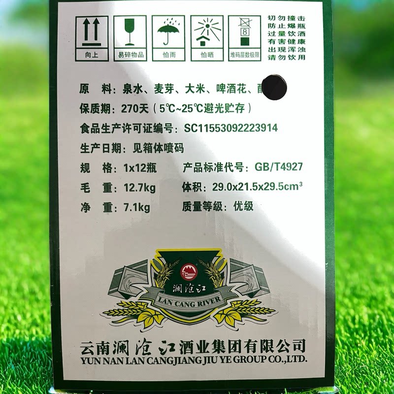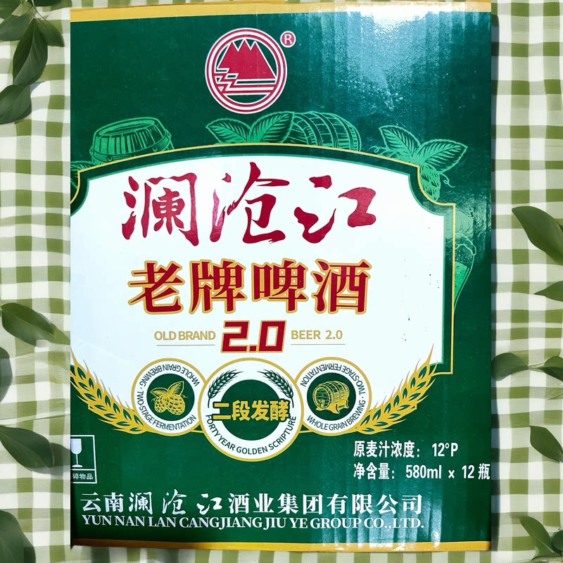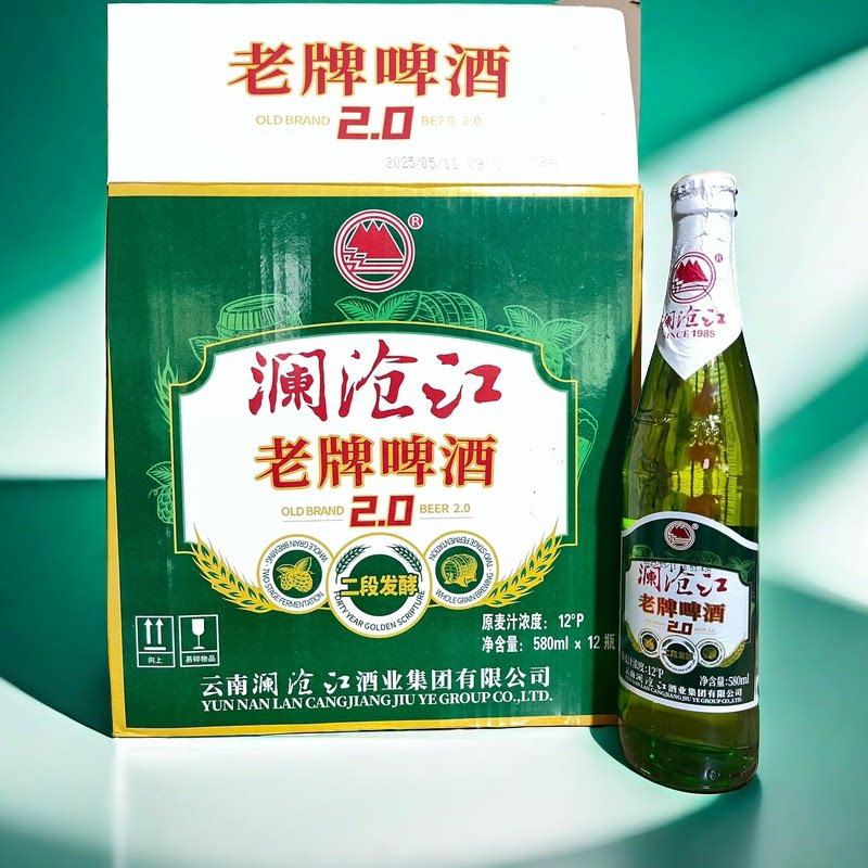 📚 云南临沧优选澜沧江老牌啤酒原麦汁浓度12°P优级绿标580ml大瓶