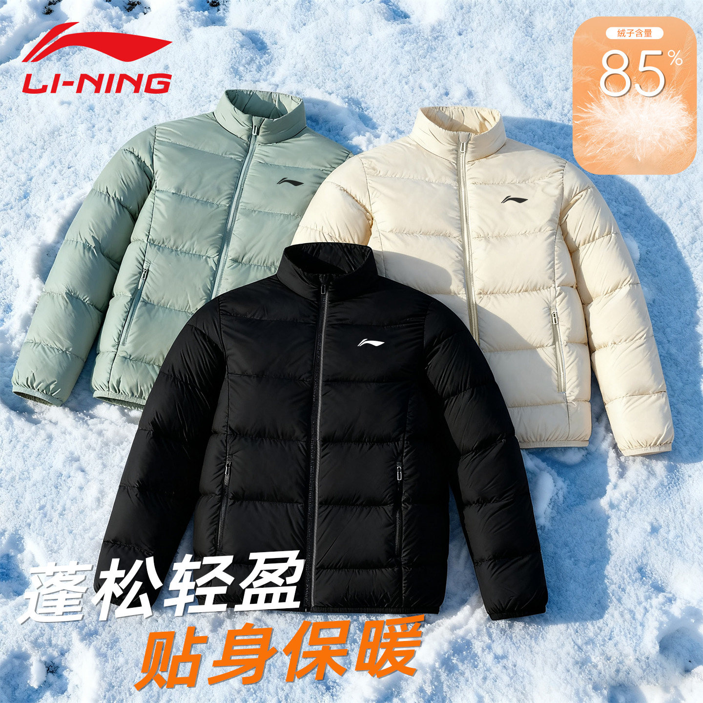 📚 李宁轻薄羽绒服男士冬季短款2025新款立领保暖高端排骨羽绒外套