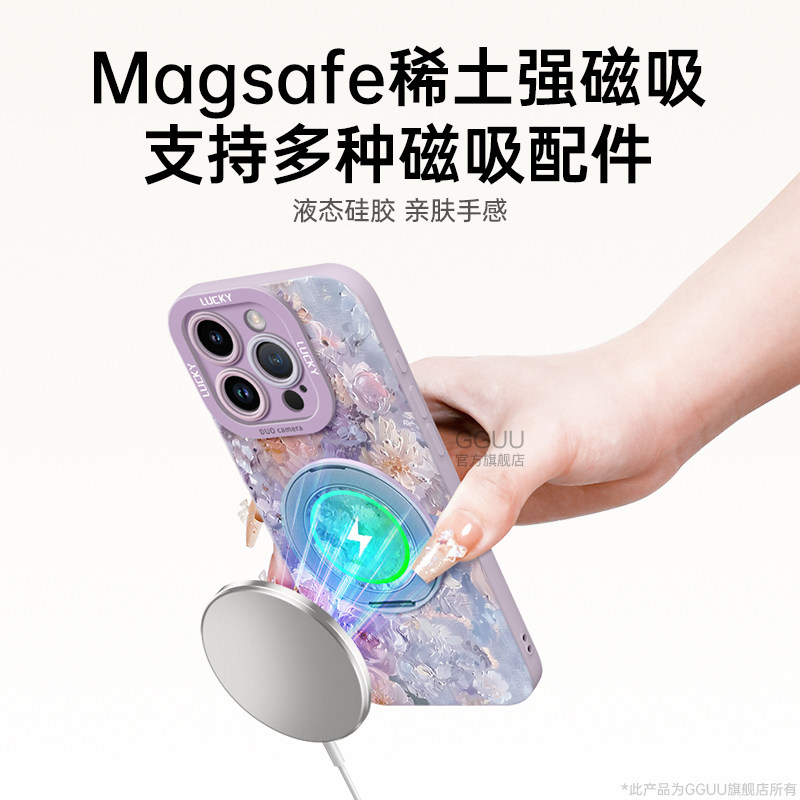 📚 magsafe磁吸支架GGUU适用苹果16promax手机壳iphone17pro套17油画17promax新款14女13硅胶花丛15外ip保护pro