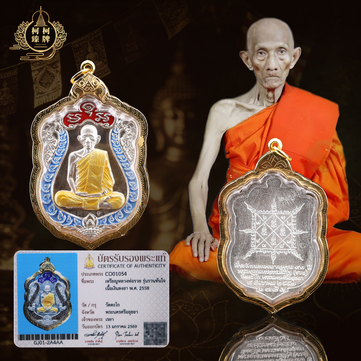 📚 泰国正品龙婆瑞2557年大富翁天蓝理事舍玛自身纯银金壳萨马空