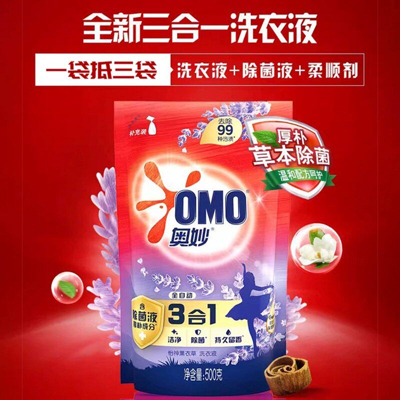 📚 奥妙洗衣液500g袋装家用薰衣草香持久留香去污除菌三合一去污渍