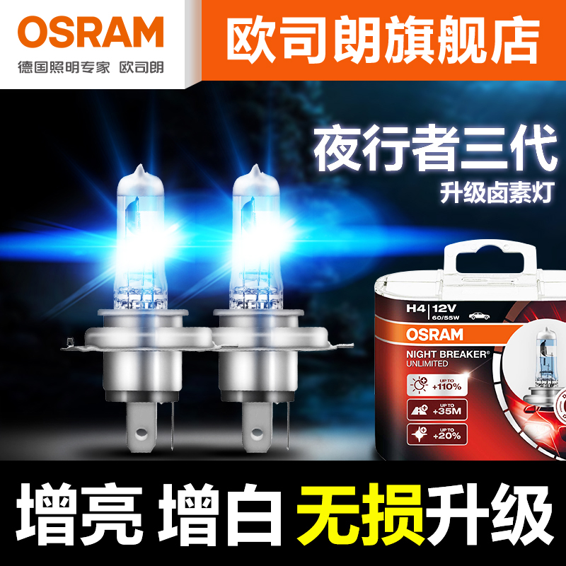 📚 欧司朗夜行者三代车灯 H1H4H7H11汽车激光大灯改装强光远近光灯泡