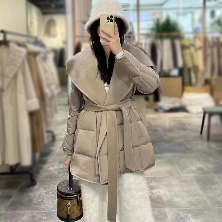 📚 2025冬气质系带收腰双面全羊毛呢羽绒服女加厚鹅绒大衣中长款外套