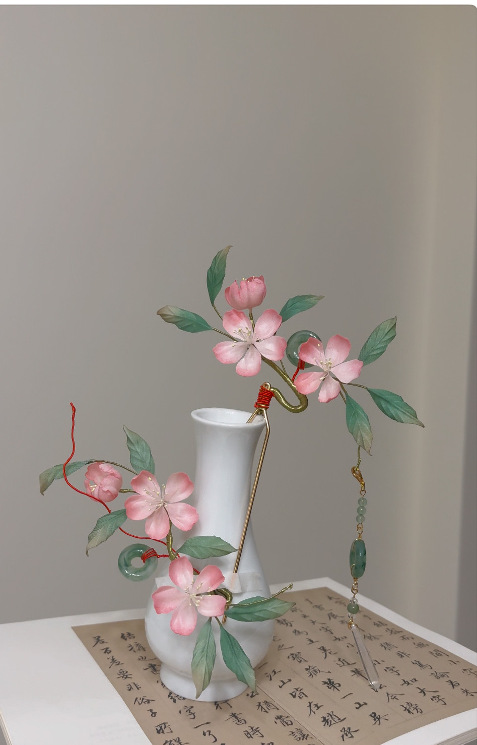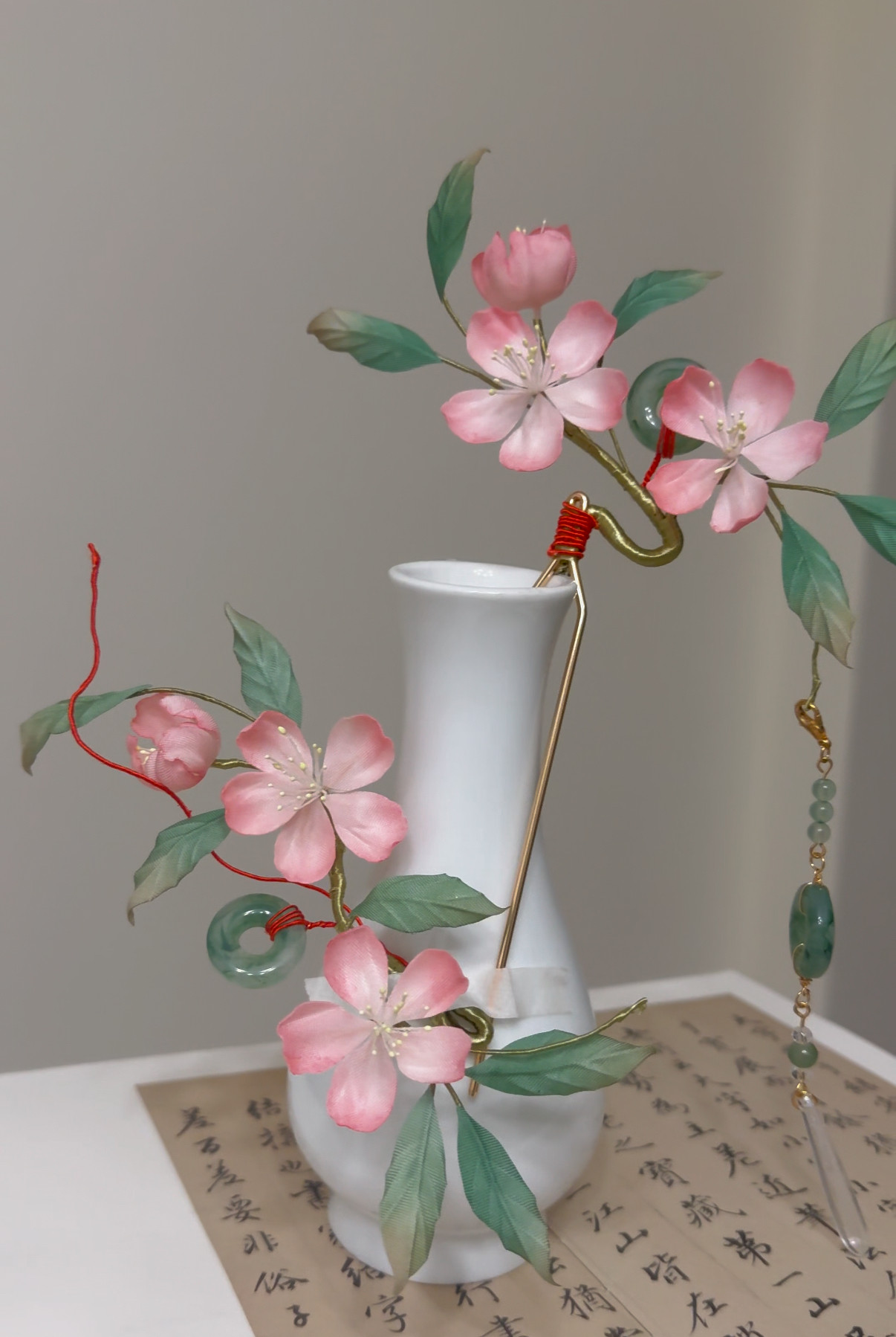 📚 原创 莺时 真丝烫花发饰发钗软杆簪花流苏头饰古风汉服配饰