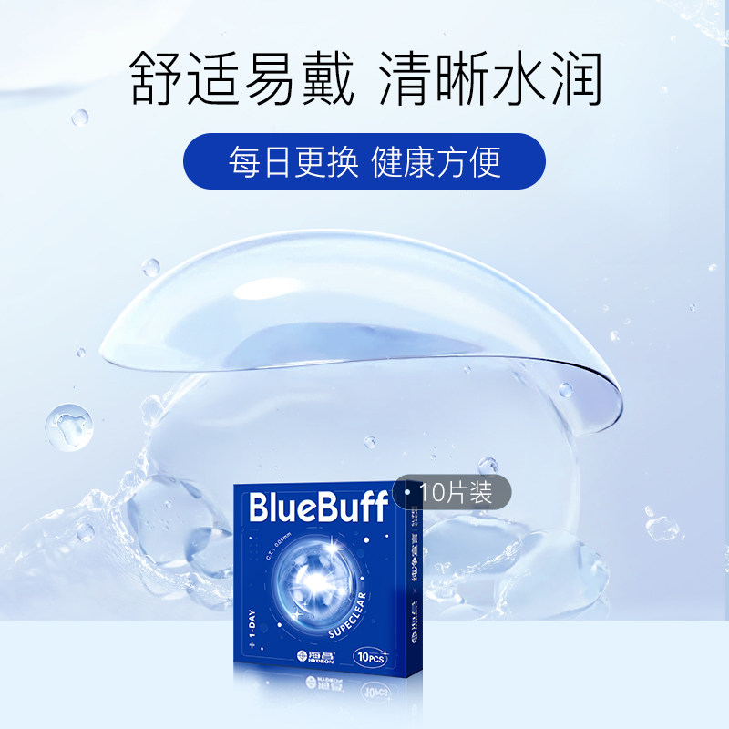 📚 海昌隐形近视眼镜蓝buff日抛透明透氧舒适非半年抛水凝胶正