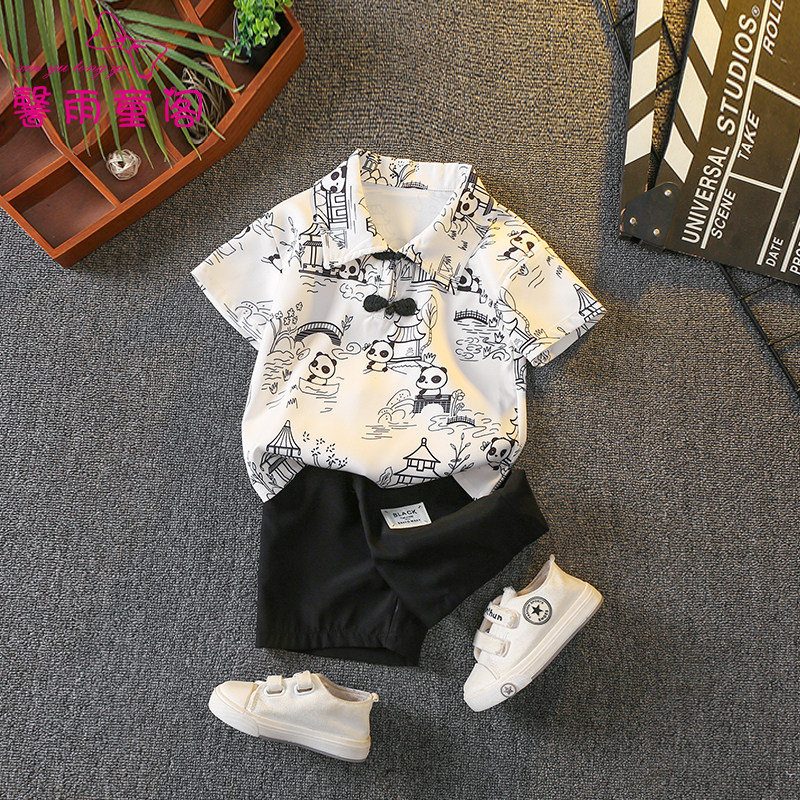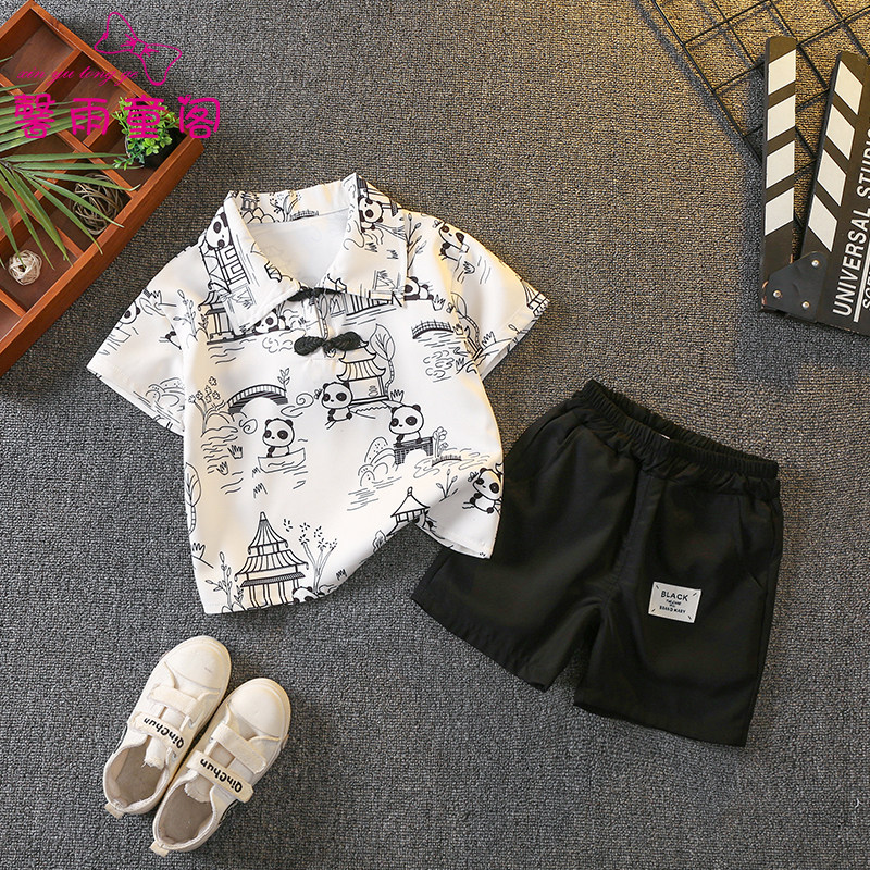 📚 男童汉服儿童中式唐装短袖套装夏季女童宝宝国风旗袍裙六一表演服