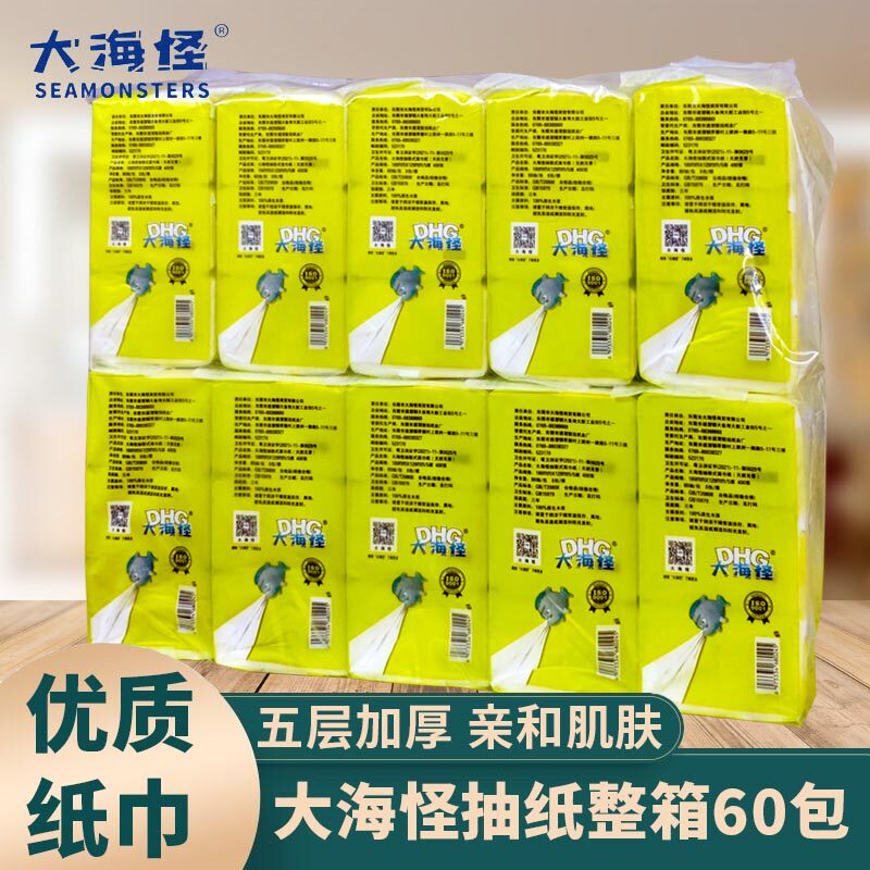 📚 大海怪纸巾整箱60包5层加厚实惠家用餐巾纸卫生纸80抽擦手纸木浆