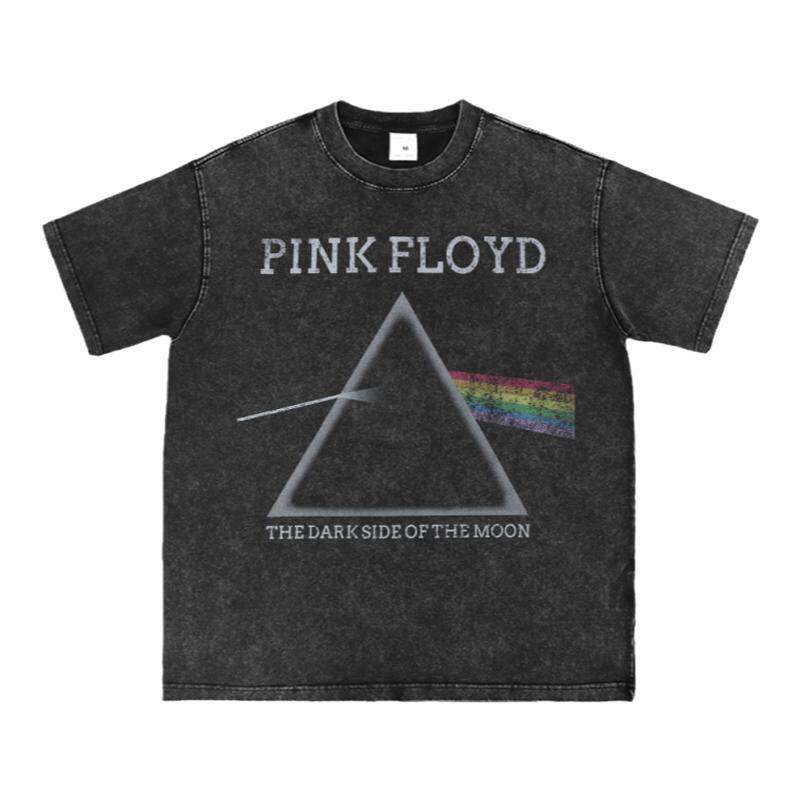 📚 PinkFloyd水洗做旧复古灰美式街头平克弗洛伊德摇滚乐队短袖T恤