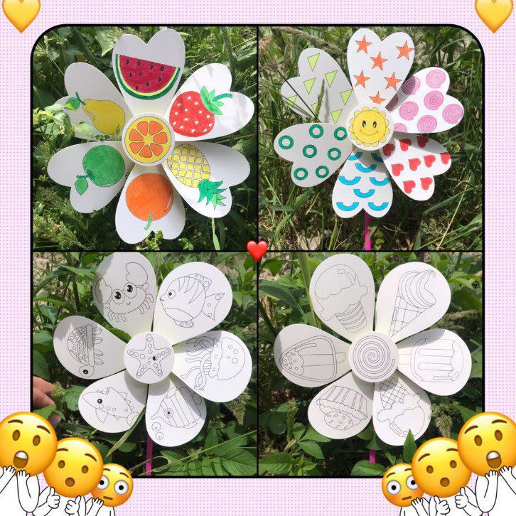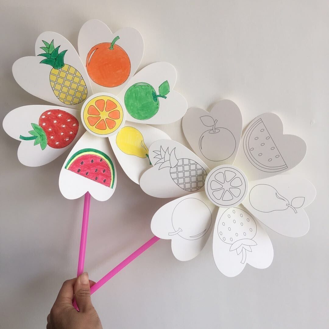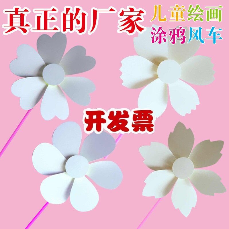 📚 网红幼儿园儿童春天户外玩具七彩手工转动风车diy材料包美工涂鸦