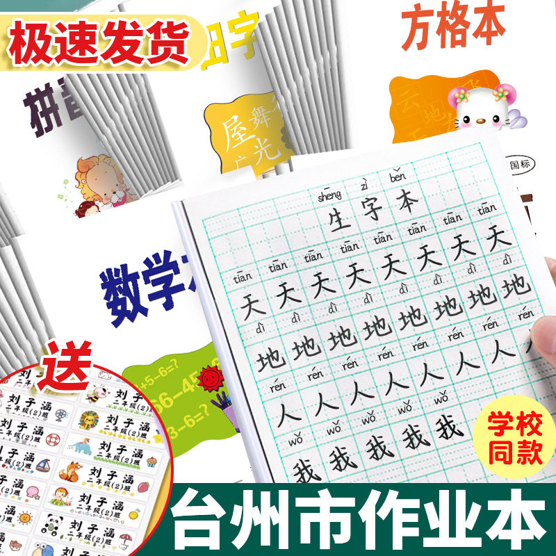 📚 台州市杭州中小学统一作业本英语本拼田拼音田字本练习方格数学本