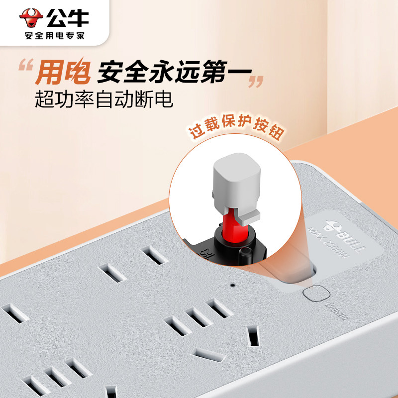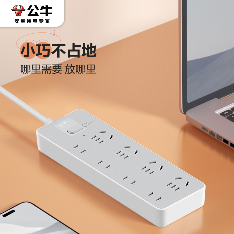 📚 公牛超薄贴墙插头扁平电源小型usb扁头插排插板拖线板带线插座1cm