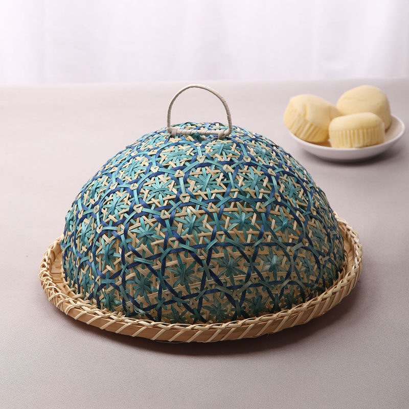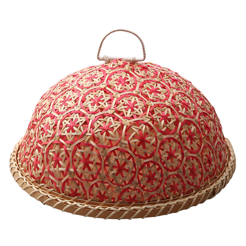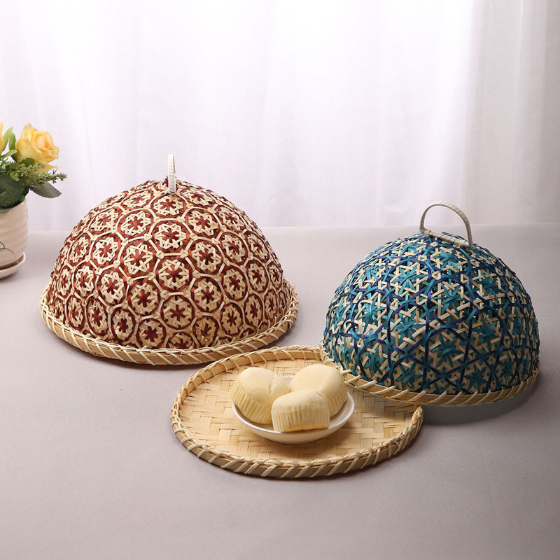 📚 手工竹编果盘面包筐创意圆形带盖防虫筐式餐桌罩馒头筐酒店菜