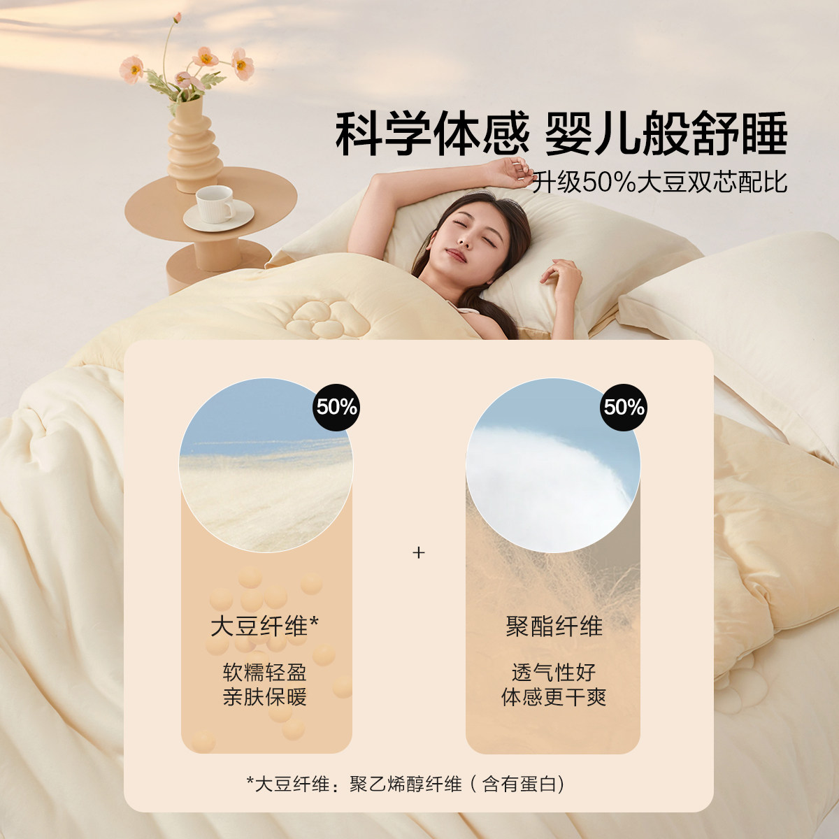 📚 水星家纺大豆被子A类春秋被全棉针织抑菌防螨冬被被芯四季通用