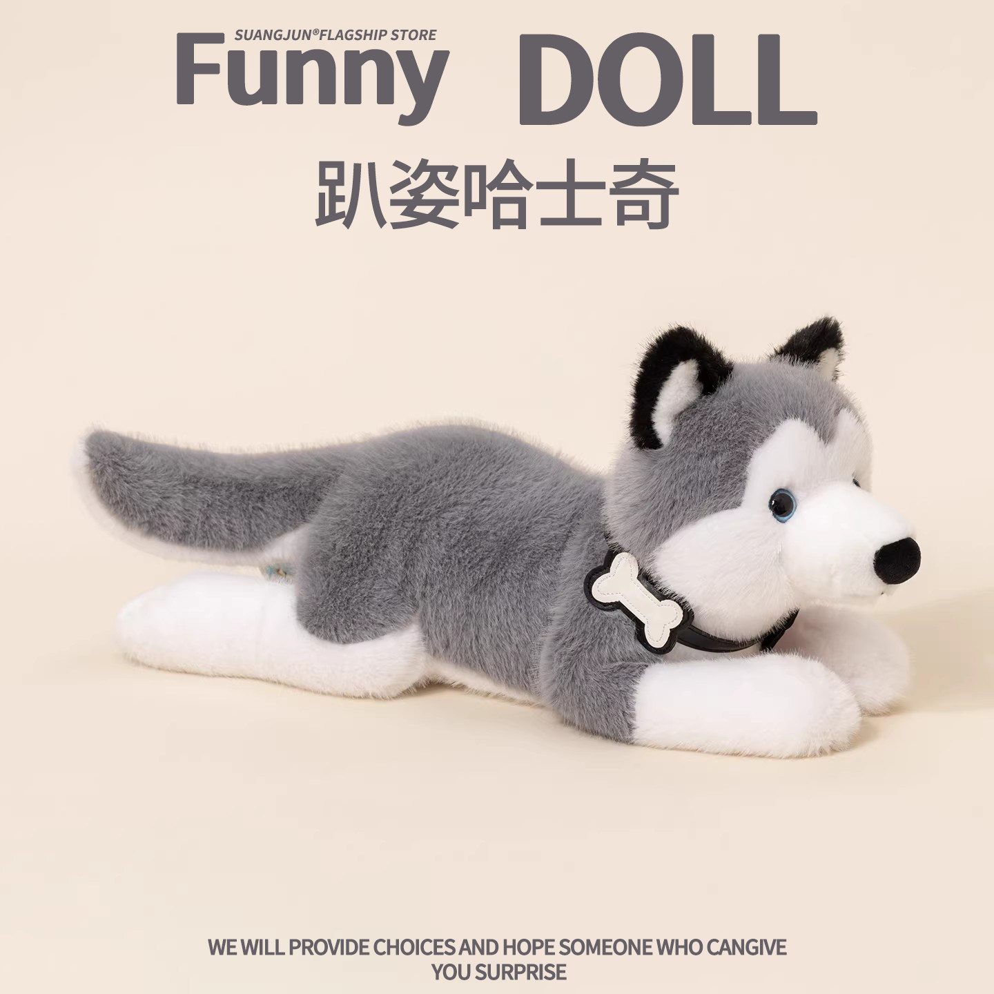 📚 仿真趴姿哈士奇玩偶小狗狗公仔毛绒玩具睡觉抱枕娃娃儿童生日礼物