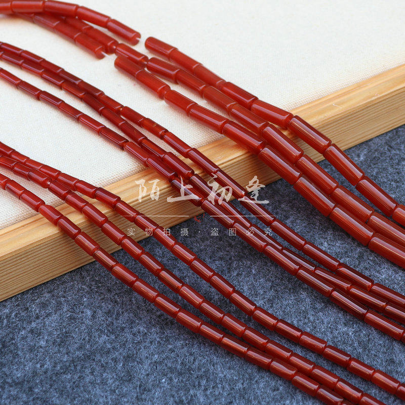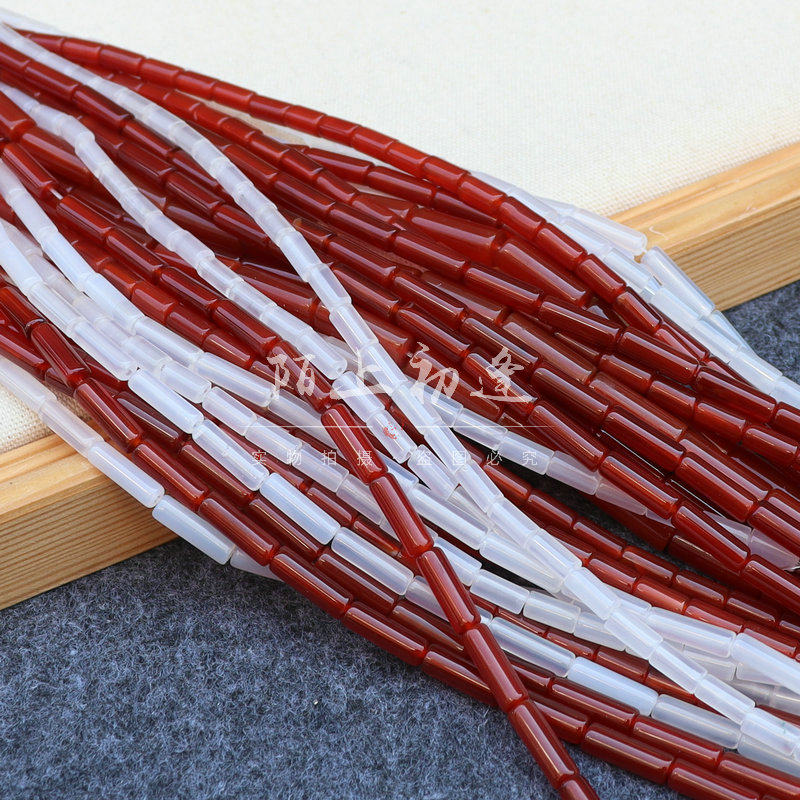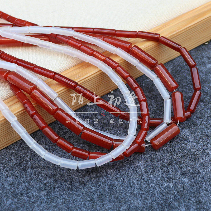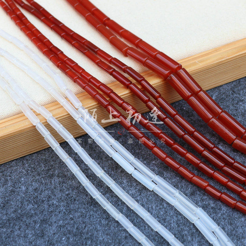 📚 白 红玛瑙圆管珠桶珠圆柱散珠半成品diy手工璎珞流苏耳饰发簪材料