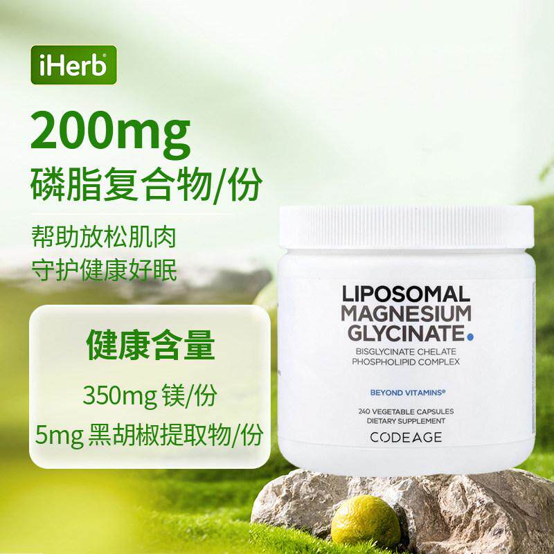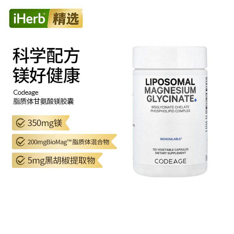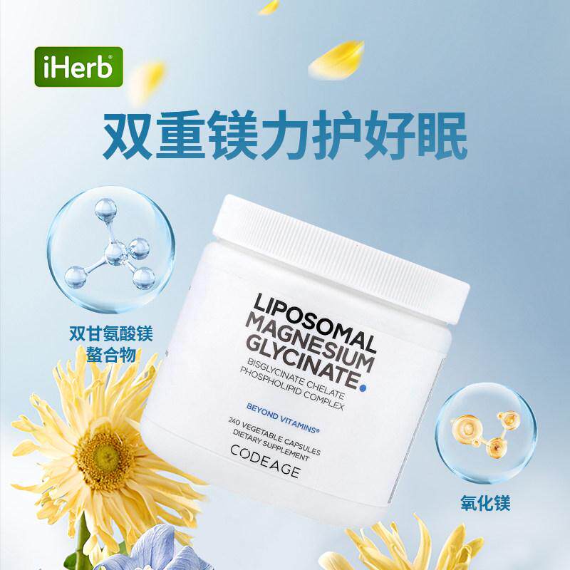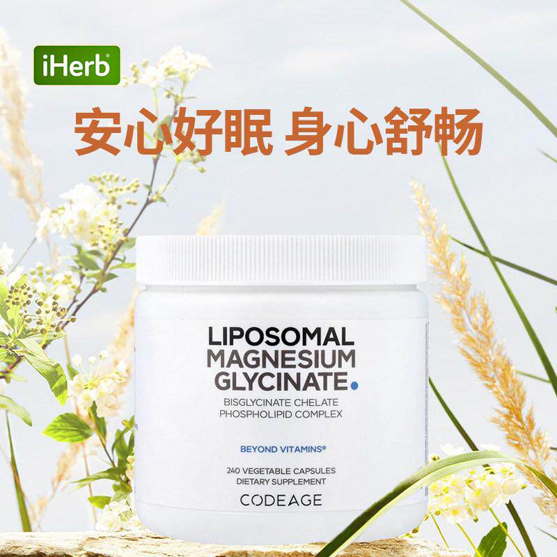 📚 Codeage脂质体甘氨酸镁补镁片睡眠神经放松双甘氨酸螯合物磷脂复