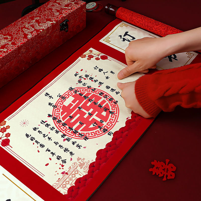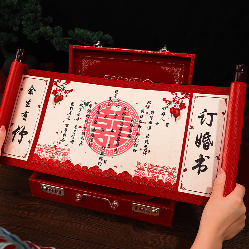 📚 复古圣旨卷轴订婚书中国风婚聘金订日子定婚书结婚端聘书摆台卷轴