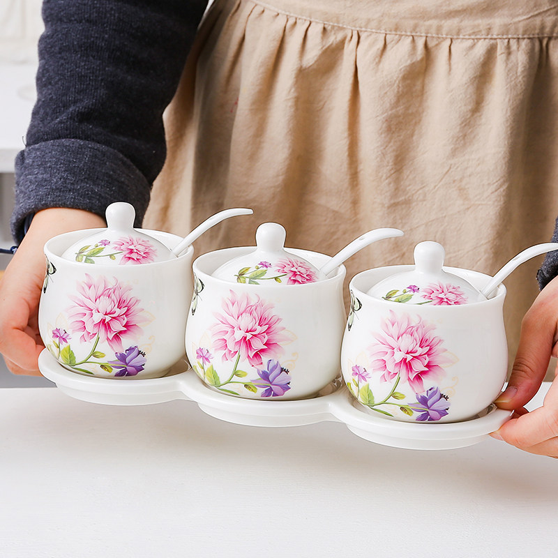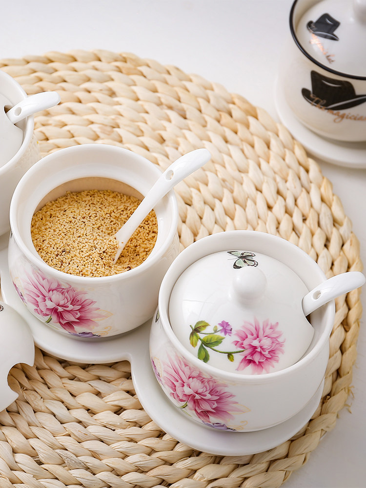 📚 调料罐陶瓷调味罐厨房家用调料盒套装组合装收纳油盐味精罐密封盖
