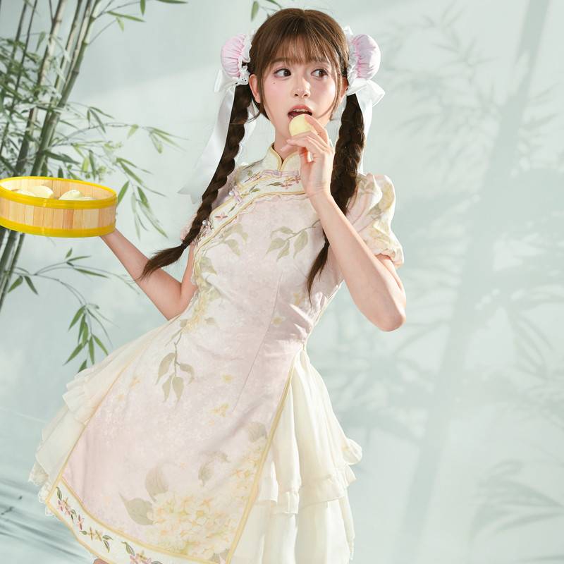 📚 森女部落原创设计中华风lo娘旗袍连衣裙粉色假两件修身款显高裙子