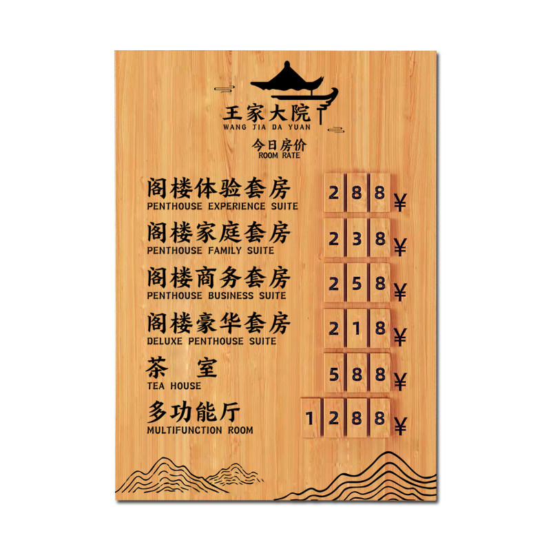 📚 酒店价格展d示牌木质宾馆民宿价目表前台房价牌今日房价牌实木挂